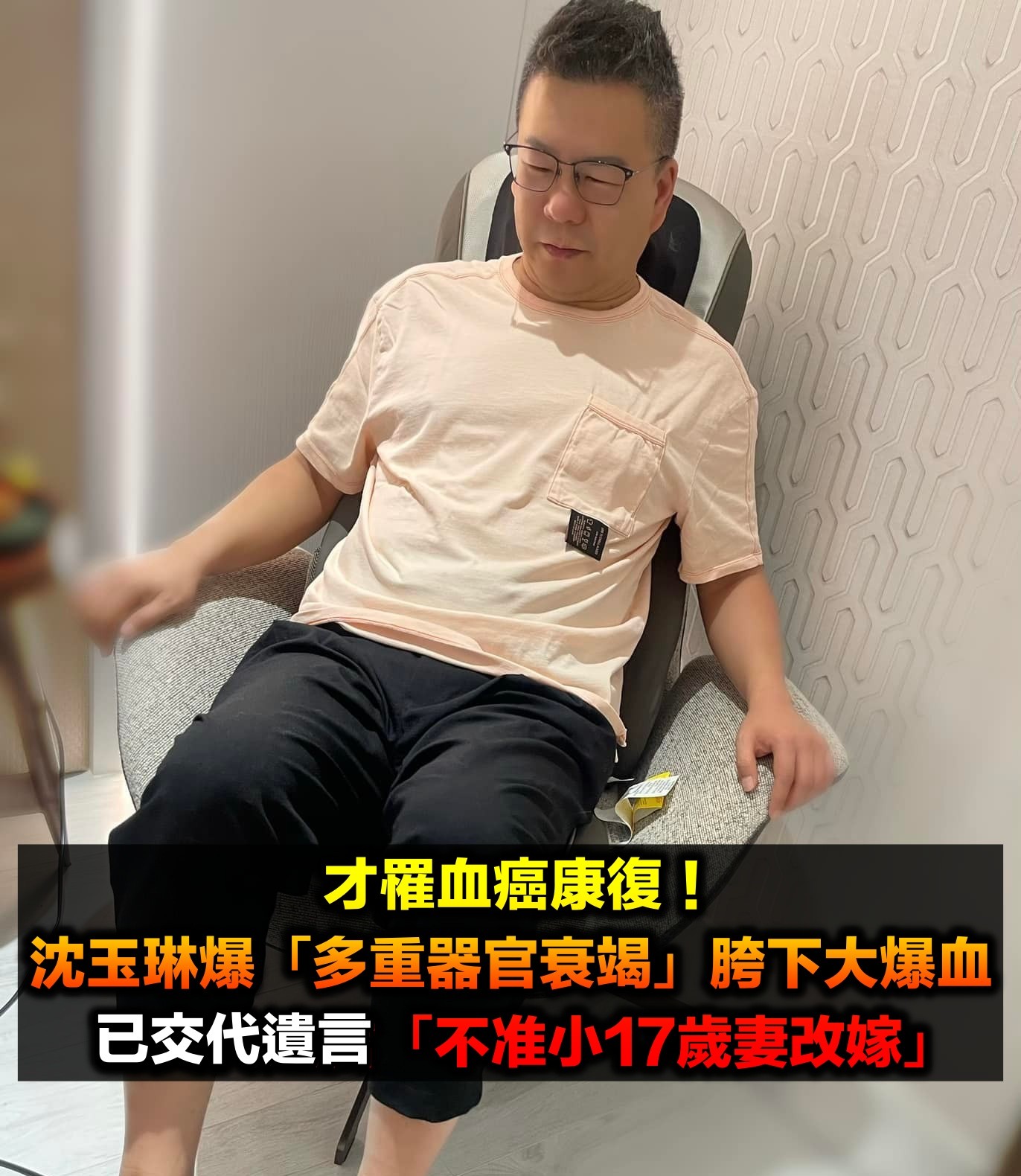 才罹血癌康復!沈玉琳自爆「多重器官衰竭」胯下大爆血 已交代遺言「不准小17歲妻改嫁」