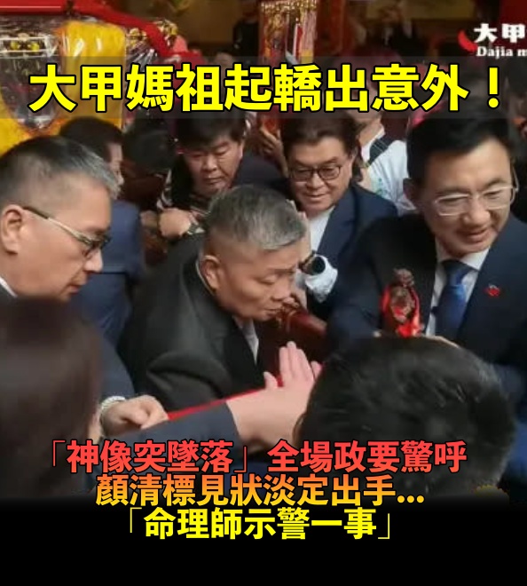 大甲媽祖起轎爆意外!千里眼「神像突墜落」全場政要驚呼 顏清標淡定出手「命理師示警了」 阿部豪義寺 2026-04-18 檢舉 圖片來源:大甲鎮瀾宮YT直播儘管發生這段插曲,信眾的虔誠不減,大批民眾一早就湧入鎮瀾宮參拜。晚間起駕時,預計由立法院長韓國瑜、國民黨主席鄭麗文、台中市長盧秀燕等藍綠白大咖到場,共同恭送媽祖展開9天8夜的進香之旅。 Advertisements 圖片來源:TVBS新聞網來看看當時驚險畫面:影片來源:ettoday新聞雲|YT來源:TVBS新聞網 Advertisements 回首頁 2/2 Advertisements 猜你會喜歡 整個4月都是黃金補運期!無法「親自跟遶境」也有用 命理師曝「3招對接能量」與媽祖同頻 白沙屯媽祖爆爭議!香燈腳「集體失格」她暴怒:媽祖不會保佑你們 孝媳淚求白沙屯媽祖「尋找失蹤婆婆」!才過2天「遺體找到了」 編輯精選推薦 More + 昨天還一起跳舞!亞馬遜部落突翻臉「嚮導遭200人圍攻」 他慘被2公尺貫穿 死在宿舍裡!男大生「吃完早餐身亡」 醫揪元兇「一超常吃餐點」藏危機:6~72小時就沒命 最善良的4個生肖!人緣好貴人多 中年前後財運暴漲 事業風光情路坎坷!77歲女神「渣夫出軌還求復合」 她單身至今「被偶遇驚天一幕」:根本反人類 聚會遇見「和自己長一模一樣的人」!連興趣都像成為閨蜜 一年後「突然想到要驗DNA」結果傻了 認不出是昔日女神!她坦承罹病「爆瘦剩40公斤」 大方宣布「我是同性戀」 余苑綺走4年了!余祥銓曝「臨終最後託付我3事」 淚喊「有一件事我沒做到」祂突顯靈:起雞皮疙瘩 不能嫁!對外人「和善、寬容」 卻經常「對老婆發火」的4大生肖男 震撼全網!31歲美女網紅猝逝「母心痛公開死因」:所有女人,請妳別仗著自己年輕 台灣人一致認同!國旅「最不想去縣市」第一名出爐 價錢過高「現場又很落漆」:不值得 獨立顧家、寵老婆!「最值得嫁」的3大生肖男 遇到了就不要錯過 為了拍美照!女遊客「把20年櫻花樹壓斷」園方震怒回應 放大版的大雞塊!主人打造「巨型6塊雞塊狗窩」送愛犬 超強細節「連麥當勞都大讚」送上驚喜回禮 家庭大寶藏!娶到這3大星座女「幸福、財富都能兼得」:人生從此圓滿了❤️ 將1000元存銀行!她一直忘記取出 15年後想起再去銀行「一看餘額」令人大吃一驚 白沙屯媽祖起駕「因1事錯過吉時」!山邊王爺「鑾轎突爆衝」信眾嘆:神明不爽了 十二星座「吸金能力」排行榜!雙魚甘當一條鹹魚 第一名「天生會賺錢」專出富豪 註定不能享福!「命最不好」的3個農曆生日 「一生操勞」難遇大富大貴 登國際時裝周美翻!49歲舒淇「剪掉多年大長髮」 短髮封神「一轉身側面全空」驚艷米蘭 宛如來到精靈世界!面海民宿「露天浴池緊鄰懸崖」 坐上海邊鞦韆「化身唯美花仙子」夕陽背光超浪漫 「老公管不住」的4大生肖女!尤其第二個:年輕時如花似玉,年老時依然人見人愛 父姓江、母姓胡!給兒子取一「響亮名字」他卻尷尬20年:幫孩子取名請深思熟慮... 把城堡塞進魚缸裡!神人手工打造「最高顏值的夢幻魚缸」 晚上亮燈「秒變輝煌宮殿」賞魚也浪漫❤️ 不是勞碌命!4生肖女「一輩子無憂無慮」 不管到幾歲「都會有人寵」 整容上癮!20歲蛇精女「花父母1700萬」動刀上百次 整前「清純模樣曝光」她喊:開心就好