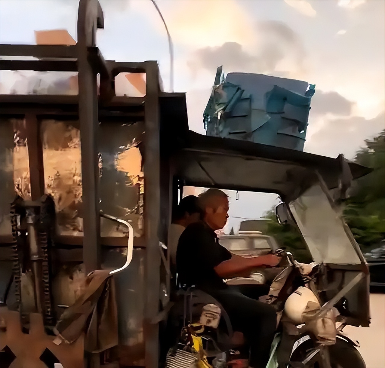 她開始跑外送,一天跑十幾單,順便跟著男友爸爸收廢品。