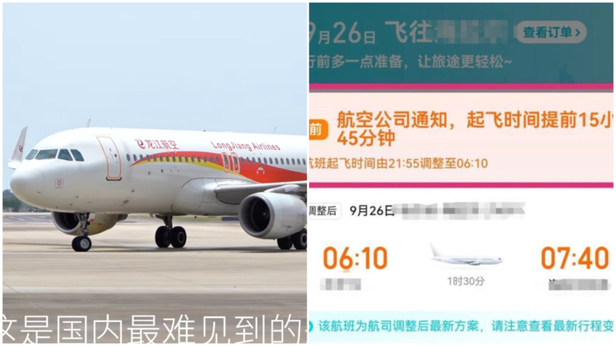 一名周姓女乘客原本預定搭乘龍江航空從哈爾濱前往呼倫貝爾的航班,卻在行前接獲航班時間異動通知。航班起飛時間從原定晚間9點55分,一口氣提前到當天早上6點10分,整整提前了將近15小時。由於周女士並非當地居民,這樣的時間變動等於要她提前一天抵達哈爾濱住宿。面對如此突如其來的變動,她最終只能無奈地選擇更換其他航班。