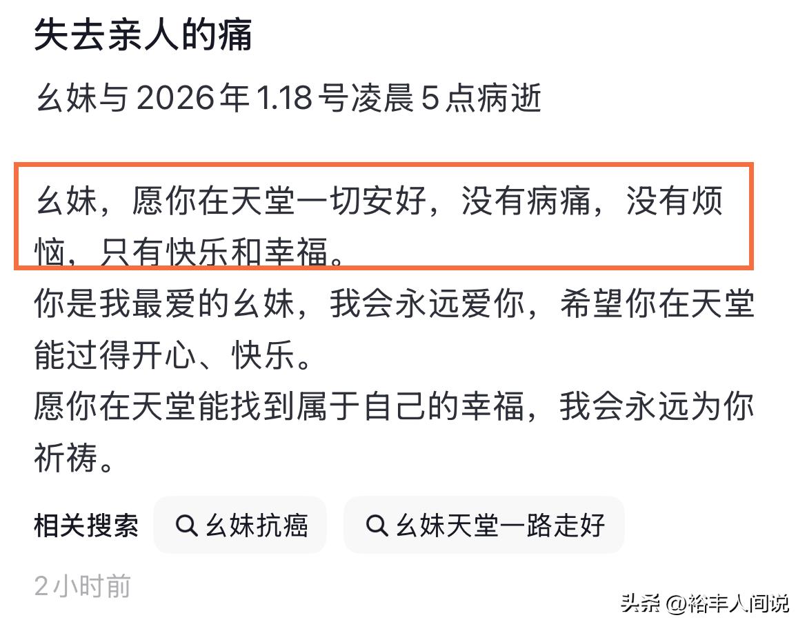 1月18號,有一位網友透露悲痛消息,她的么妹不幸在凌晨五點的時候因病去世,曬出的畫面中可以看到,她的妹妹不僅顏值頗高,而且她有完美的身形,一頭飄逸的秀髮更是透著溫婉,而這照片對比其去世前的形象,真的是判若兩人。