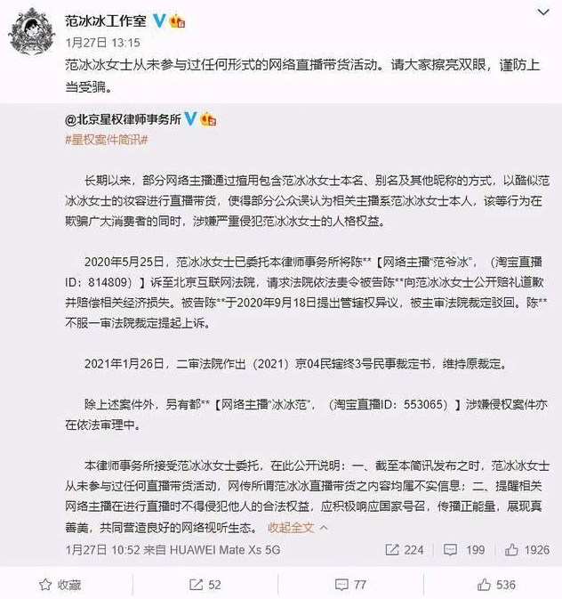 來源:HK01 、微博@淘寶主播范爺冰