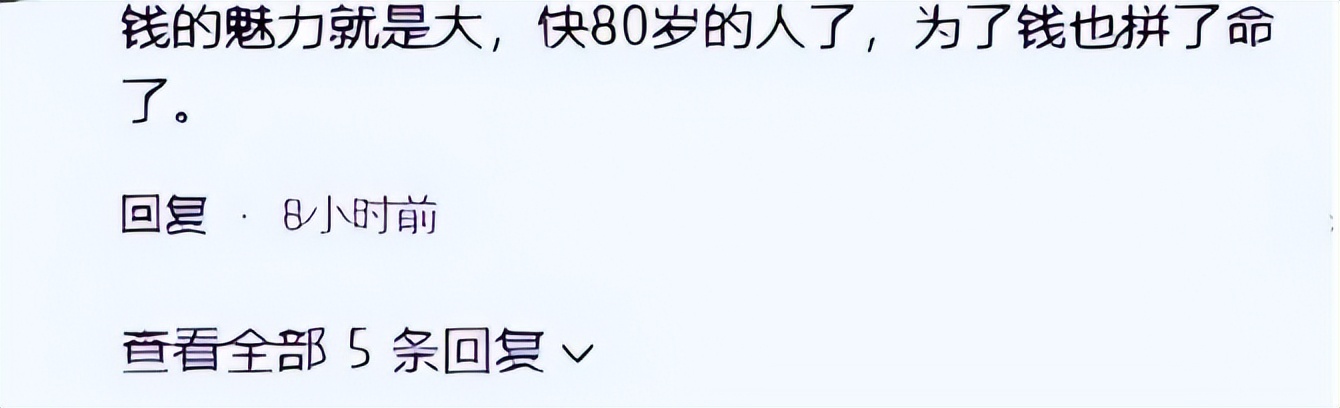 「錢的魅力就是大,快80歲的人了,為了錢也是拼了」