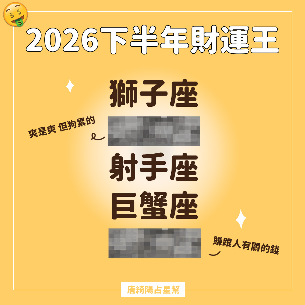 上半年不順別怕!國師點名「2026下半年財運最旺」星座Top5:冠軍苦盡甘來大發財