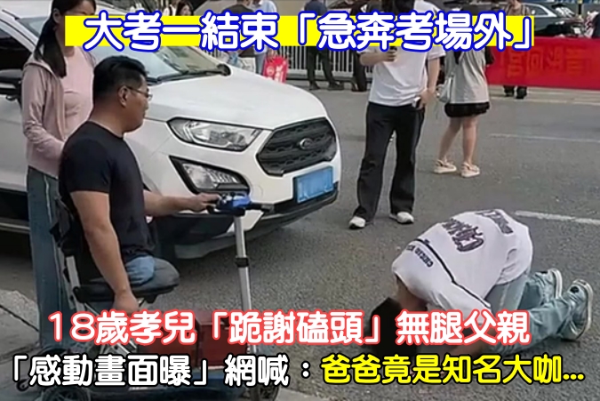 急奔考場外!18歲孝兒「跪謝磕頭」無腿父親 「感動畫面曝」網喊:爸爸身分不簡單...