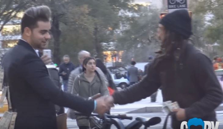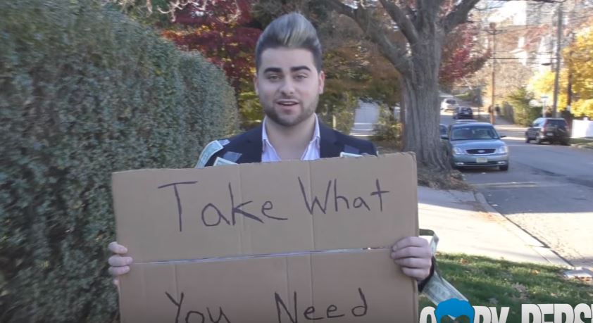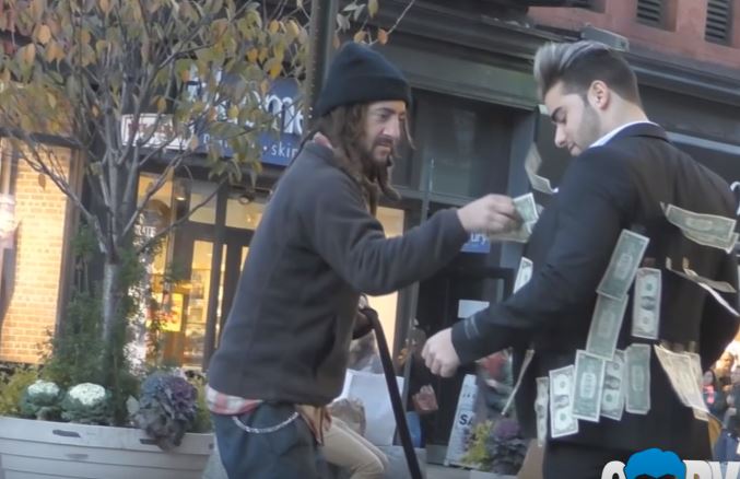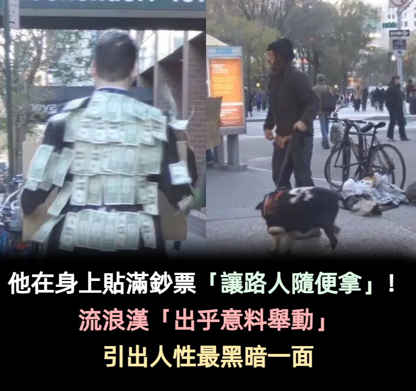 他在身上貼滿鈔票「讓路人隨便拿錢」!結果流浪漢「出乎意料舉動」引出人性最黑暗一面