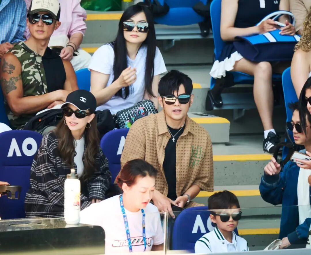 而且這次不是隨便逛街,是去澳網給中國球員張之臻加油。觀賽氛圍本來就容易被媒體捕捉,鏡頭掃到名人區很正常。