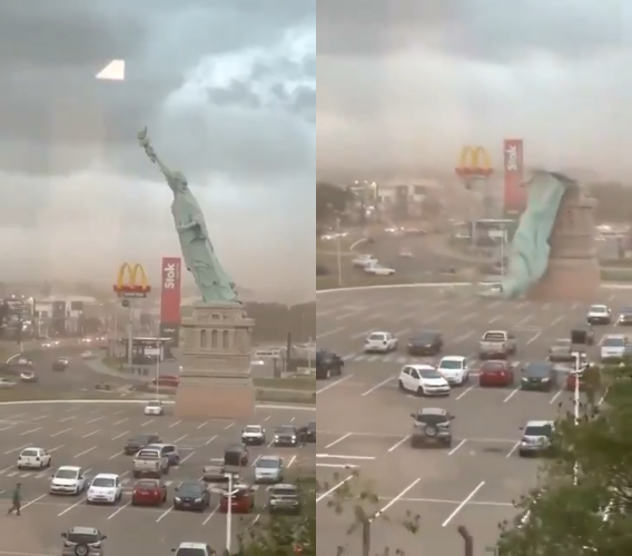 根據《ettoday新聞雲》報導,巴西南部一座大型商場外的巨型「自由女神」雕像,在暴風雨肆虐下應聲倒塌,整座雕像瞬間崩落、頭部嚴重碎裂,驚悚瞬間全被拍下並在社群平台瘋傳,所幸現場無人受傷。
