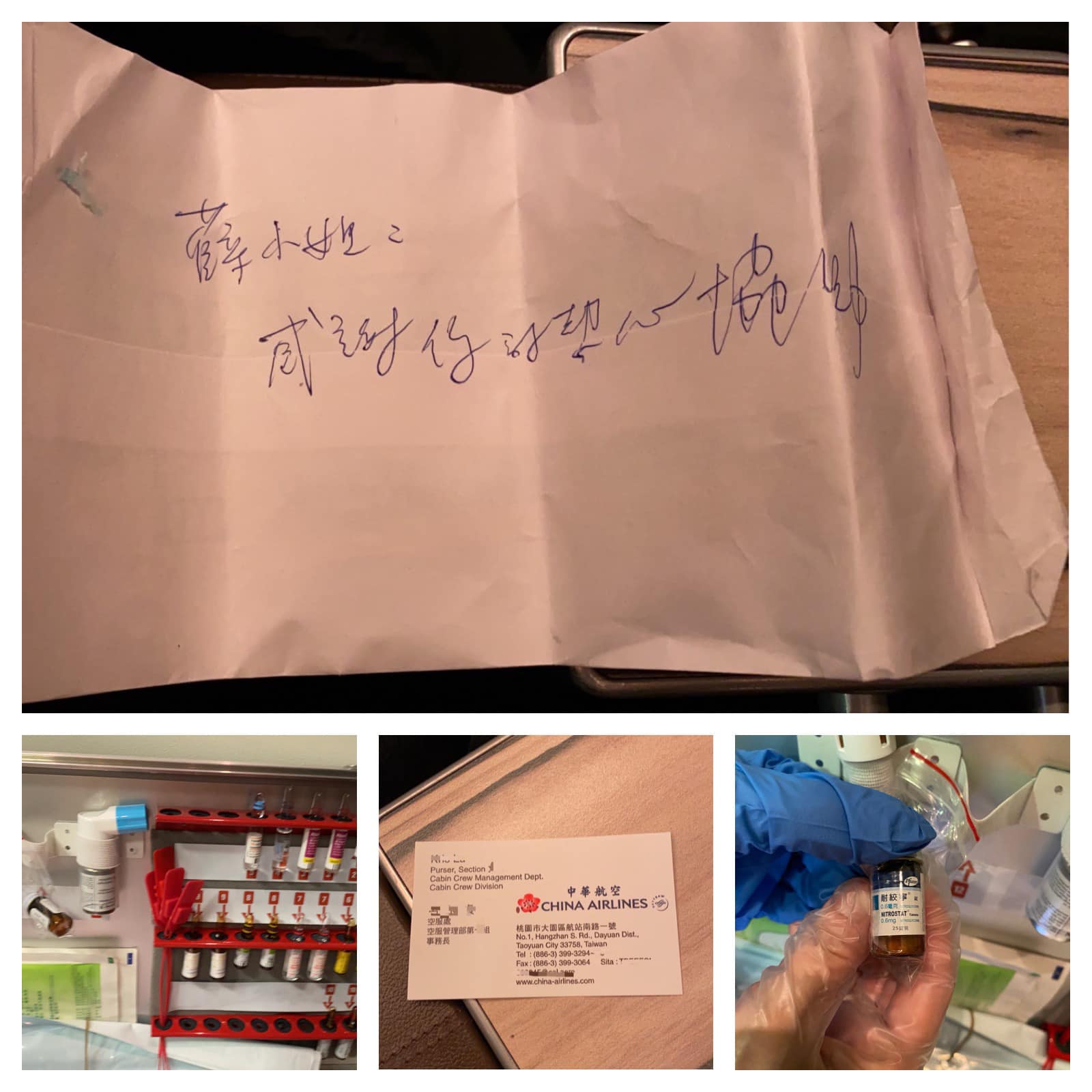 由於該名乘客出現想吐、呼吸困難、頭暈的症狀,而飛機上只有氧氣瓶、血壓計,但沒有血氧機,幸好她有隨身攜帶血氧機的習慣,一量發現女乘客血氧掉到92、血壓飆到180,連忙搭配氧氣瓶舒緩症狀,血氧濃度慢慢拉升到97,而針對血壓過高的問題,依法規定需要有醫生的口頭醫囑才能給藥,只能破例讓她踏進駕駛艙與地面醫師聯繫,但卻怎麼也無法接通,情況一度焦急。