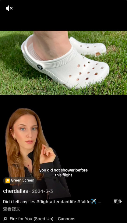 不過並非所有鞋款都能得到好評,雪兒就把穿洞洞鞋的旅客歸為高風險群,她半開玩笑地說,這類乘客可能登機前沒洗澡,身上的運動褲通常也會有髒污痕跡。而腳穿毛絨拖鞋的女性旅客,更被她列為最難應付的一群,相處起來特別費神。