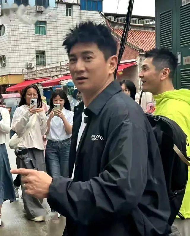 上海市集裡,穿黑色T恤配長褲的吳奇隆像個普通大叔混在人群裡。沒戴口罩墨鏡的他,被拍到皮膚坑窪得像剝開的柚子皮,近照裡下顎線都快被脂肪模糊了。可神奇的是,170cm左右的身高在路人鏡頭裡竟拍出了挺拔感,袖口下隱約露出的肌肉線條,又讓人想起他 「霹靂虎」 時期的唱跳功底。