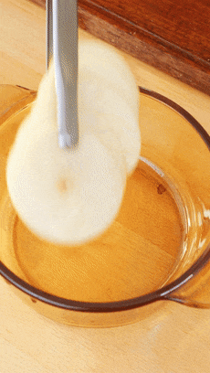 熱乎乎的雪梨甘蔗水口感清甜又很潤,喝下去暖身暖胃,甚至不加糖都覺得甜絲絲的。