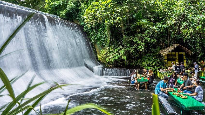 Labassin餐廳位於聖巴勃羅市(San Pablo City),為何要特別介紹它呢?因為它是全世界獨一無二的,它是一間「瀑布餐廳」。