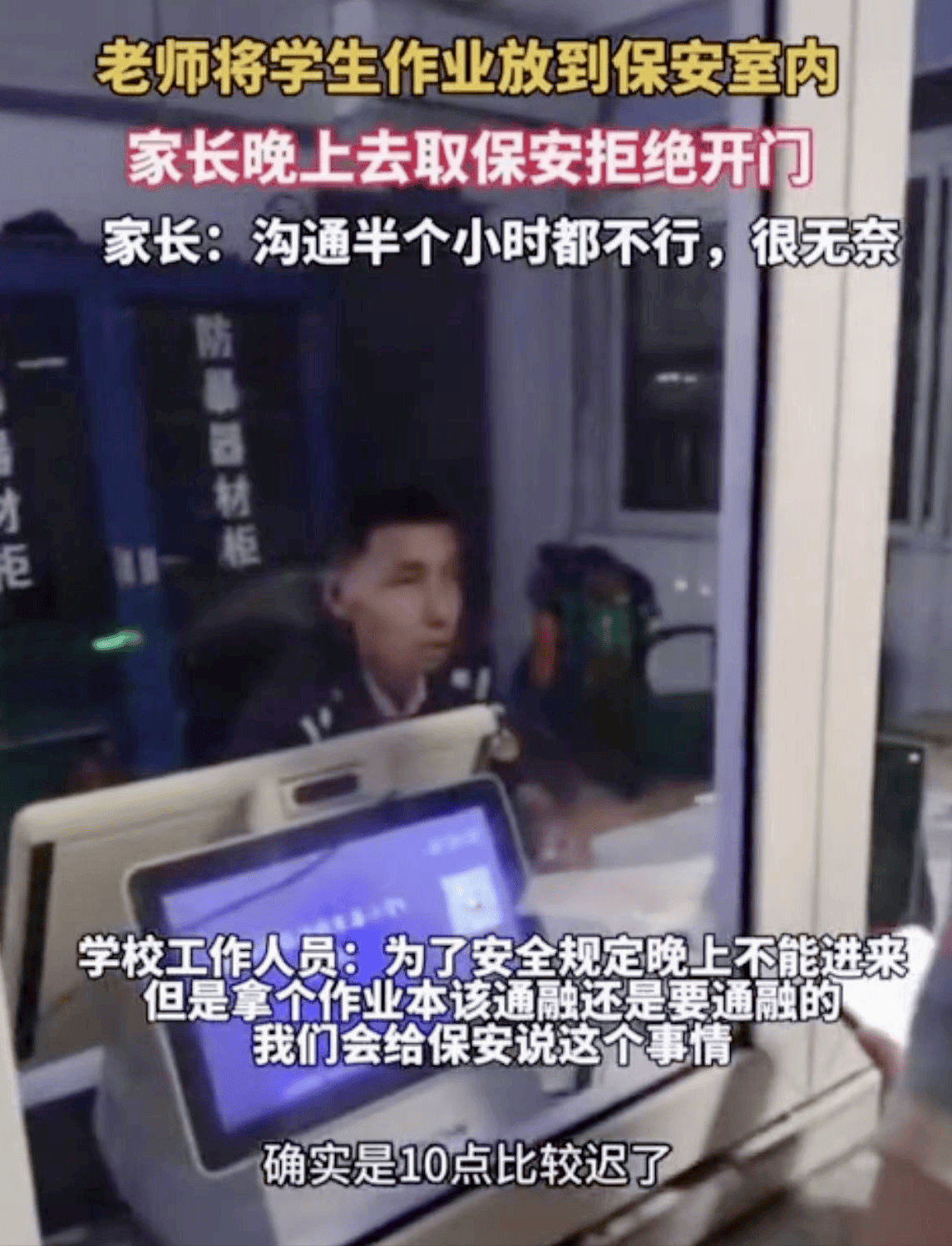 大陸浙江一位家長,將自己遇到事情發在網上,引來很多人圍觀。這位家長表示,下班比較晚,接到老師消息,讓去學校警衛室取一下孩子的作業。這本來是很正常的事情,警衛室有人值班,遇到小孩忘帶作業了,老師會放在那裡,讓家長隨時來取。