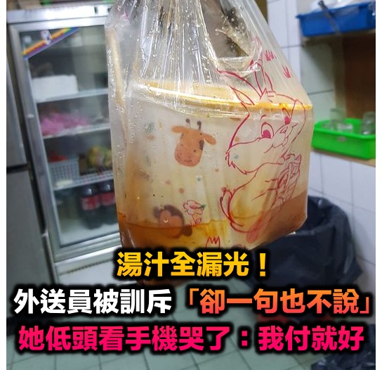 湯汁全漏光!外送員被訓斥「卻一句話也不說」 她困惑「低頭看手機」哭了:我付錢就好