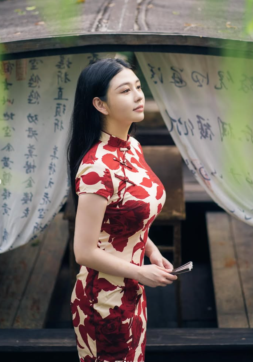 除了這組「白娘子」的萬聖節美照,在最新發布的照片中,沈月還身穿一襲點綴著玫瑰圖樣的緊身旗袍,完美勾勒出她姣好的身材曲線!一頭烏黑亮麗的長髮搭配珍珠耳飾,整體造型散發出濃厚的東方古典美感。