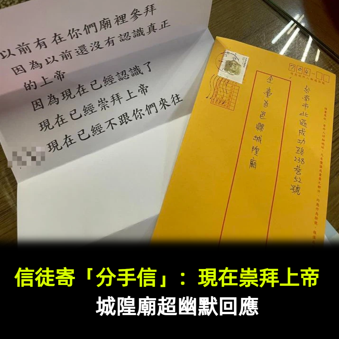 信徒寄「分手信」:現在崇拜上帝 城隍廟超幽默回應