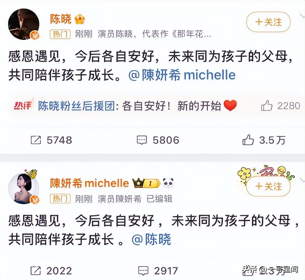 當初兩人離婚的時候說好「各自安好」,沒想到先放不下的是陳曉的粉絲,只能說鬧得太難看了。