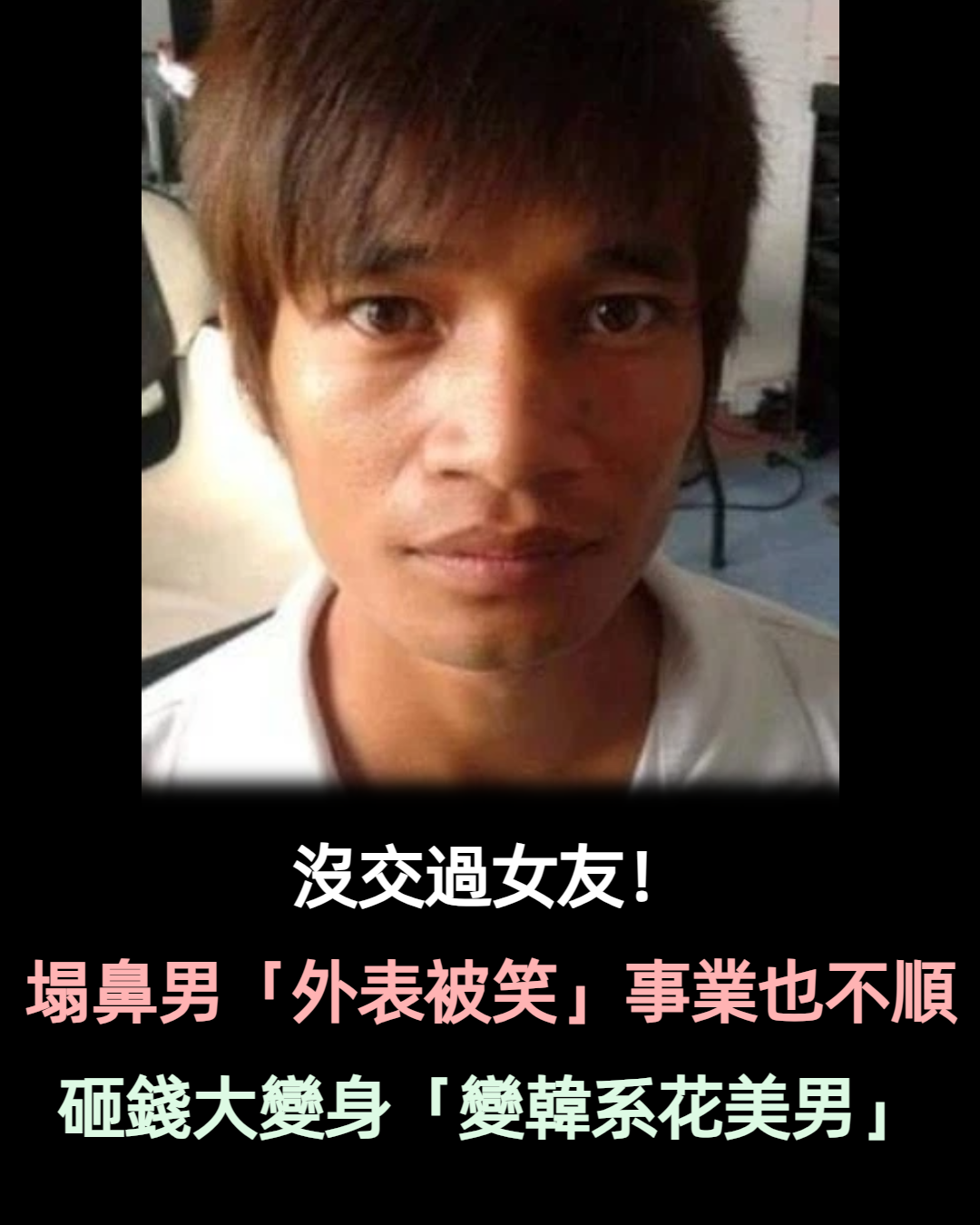 沒交過女友!23歲塌鼻男「外表被嘲笑」連事業都不順 砸錢大變身「逆襲變韓系花美男」