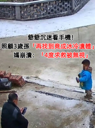 爺爺沉迷看抖音!照顧3歲孫「再找到竟成冰冷遺體」 媽崩潰看監視器「4度求救被無視」 Elmo 2026-01-02 檢舉 孩子的媽得知心愛寶貝過世,痛不欲生,直呼:「老人家說他當時鬼附身,沒聽到孩子在叫他,甚至說不知道自己在看手機,還說為什麼孩子不來拉著自己去,可是我兒子只是個小寶寶啊,以為喊了爺爺就會跟去,可是他沒有,我真的想不通!」看著生前最後影片,直呼最後在水中找到遺體、玩具,難以承受喪子之痛。影片來源:雨過天晴怎麼會這樣...資料來源:《ETtoday》 Advertisements 回首頁 2/2 Advertisements 猜你會喜歡 人死之前!會出現「15個徵兆」 若佔2個以上「壽命就只剩半年了」 編輯精選推薦 More + 離婚11年!洪榮宏愛女結婚「終破冰前妻」 「2爸爸牽她進場」催淚畫面曝 腹痛緊急送醫!25歲女子開刀「取出1公斤黑球」 醫曝「真實病因」傻眼了:整個胃都堵住... 相差18歲!58歲康康自爆「與老婆分房12年」驚呆眾人 提到沈玉琳「坦言罹同1病」:必須警惕... 臨時找不到保母!女學生硬著頭皮「帶寶寶去大學上課」 教授霸氣伸手「寶寶我來抱吧」畫面超溫馨 弟成植物人、姊猝逝!玉女歌手「遭前夫設套」騙走娘家房產 「狠斬16年婚姻」近況曝 時空錯亂!全球迎2026「1國家還活在2018」 15歲兒「睡夢中離世」!本土女星「送愛子火化」求做1事 「PO照圓滿了」:媽媽和你永不分開 無預警宣布喜訊!台語歌王「首曝光帥兒」有顏又有才 「考一次就上」網讚:虎父無犬子 晚年兒孫滿堂!73歲影壇大哥「拄拐杖現身」腳步蹣跚 兒子「全程攙扶不喊累」網羨:又帥又孝順 大咖男星妹妹出嫁!全身金飾「曾獲近千萬豪宅」嫁妝豐厚 兄妹長超像「一看媽媽懂了」:基因強大 曾比江蕙紅!台語歌后「爆未婚生子」遭指指點點 「2次手術害癱瘓」72歲近況曝 再婚2年了!43歲李燕突喊「當媽媽實在太辛苦」 認「已經有愛的結晶」:最完美的幸福❤️ 功德圓滿了!台語歌后「悲曝他離世」享壽95歲 淚喊:去當快樂的神仙吧... 本土劇女星生了!7年前凍卵「終於來到我身邊」 歌手尪嗨喊:生個足球隊 85歲失智父身亡!林葉亭突宣布「皈依佛門」 遇大師「開示一番話」忍不住淚崩 不顧反對!她嫁西班牙帥男「未婚懷胎8月」 竟連同男友「遭哥嫂殺害」 天生命好!老了無病痛「能長壽」的4個生肖女 晚年不給子女添麻煩「一生福氣多多」 台語歌后慟別摯愛!告別式上認「早隱瞞病情」 道歉哭喊:原諒我簽放棄急救 一家8口住飯店!月花16萬「連住3年還想續住」嗨喊省更多 知情人「曝內幕」:其實有房子住 放大版的大雞塊!主人打造「巨型6塊雞塊狗窩」送愛犬 超強細節「連麥當勞都大讚」送上驚喜回禮 40歲知名女星「被爆車上激戰男人」!2經紀人淚控「被逼看完全程」:過程中狂踢椅背... 22歲愛女病逝!資深男星「走不出喪女痛」留白長髮現身 掛骨灰項鍊「代女做1事」惹淚 慶祝17歲愛女畢業!53歲大咖「兒女皆讀名校」年花千萬 驕傲「她獲三大獎」:又美又自信 24歲兒失明!于美人爆「他在飯店掃廁所」維生 不盼紅包只求「別再花我的錢」 年底歷經喪母之痛!75歲郭台銘「消失1個月罕現身」 驚見他「一頭白髮入鏡」衰老原因曝光