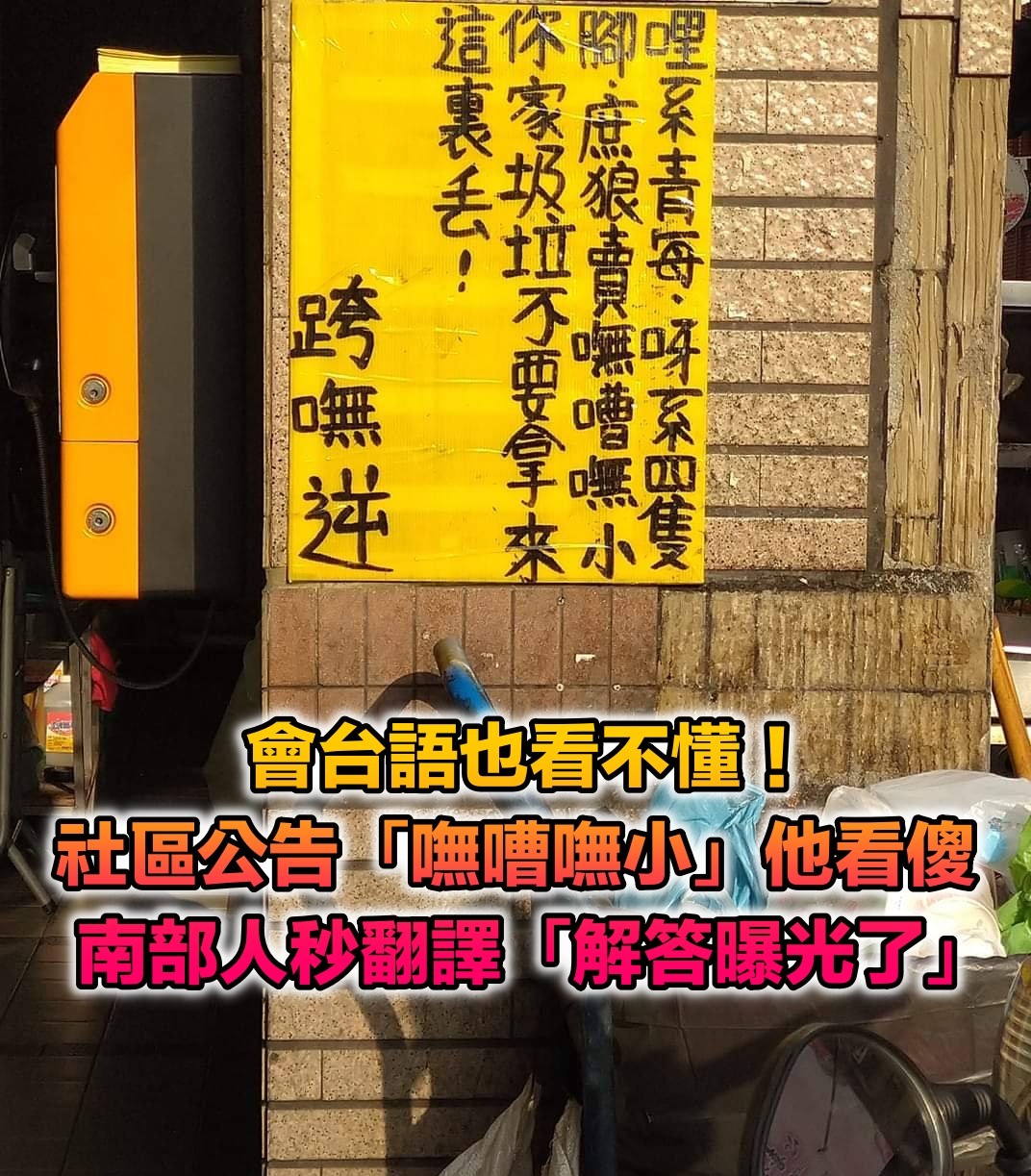會台語也看不懂!他看到公告「嘸嘈嘸小」滿頭問號 南部人秒翻譯:「濃濃的台灣味」