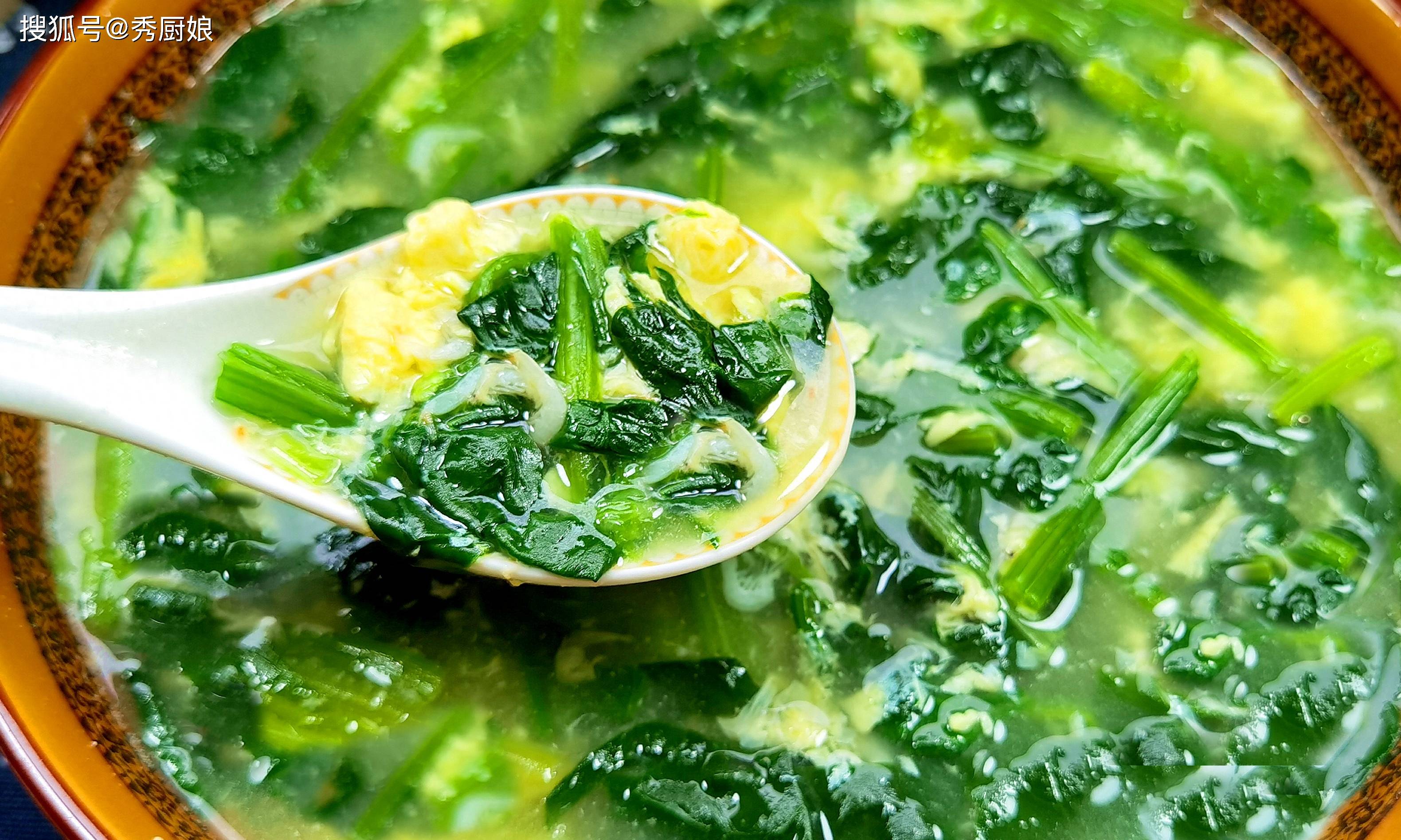 2.鍋中加少許油,放入蝦皮炒香,加入清水,大火煮開后,放入菠菜,淋入蛋液,加入少許鹽和香油,攪拌均勻,即可食用。