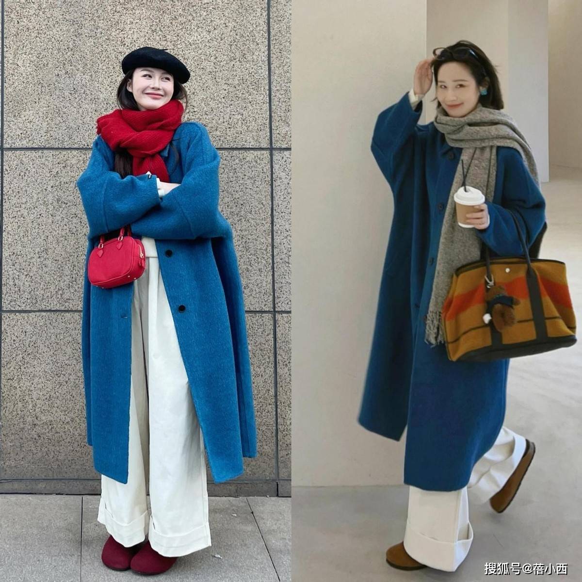 先說說最不挑人的藍色大衣,不管是冷皮還是暖皮都能輕鬆駕馭,自帶沉穩大氣的質感,還藏著滿滿的清爽感,減齡又顯氣質。