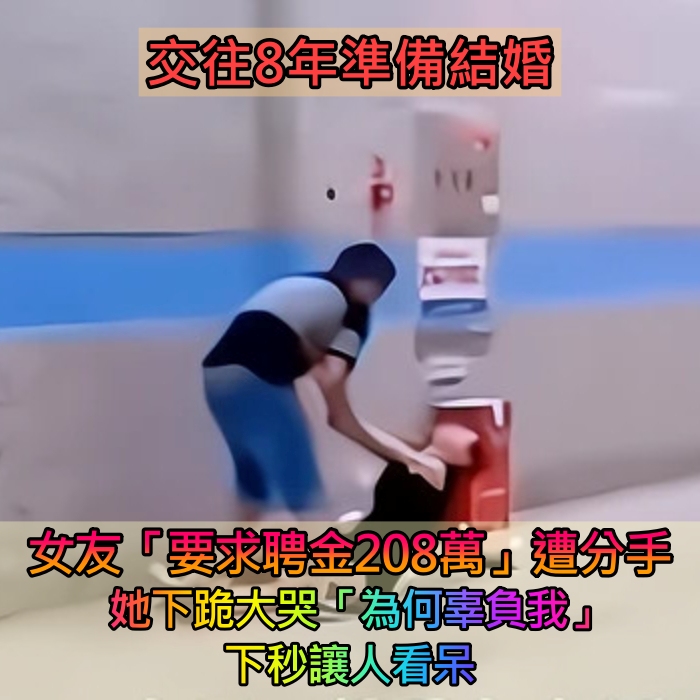 交往8年想婚!女友「要聘金208萬」男友秒提分手 她下跪大哭「為何辜負我」網嘆:要怪爸媽