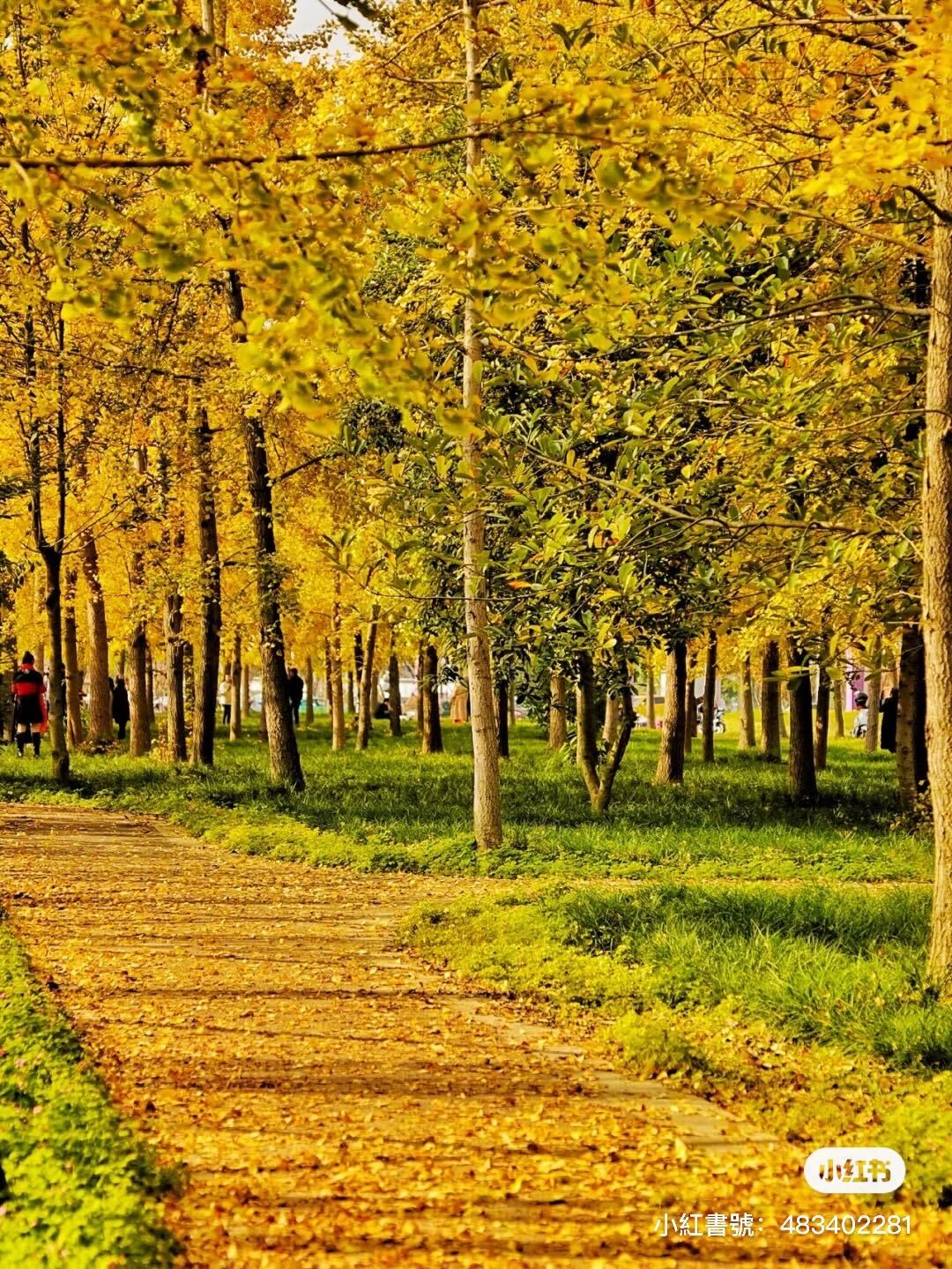 位於成都的「武侯綠博經濟園」有著整片夢幻燦爛的金黃銀杏森林,每當銀杏季節到來,整塊區域就像是被抹上黃澄澄的水彩,不用套濾鏡拍起照來就超級浪漫~樹下是軟綿綿的綠色草地,如果天氣好的話也很適合在銀杏樹下野餐!