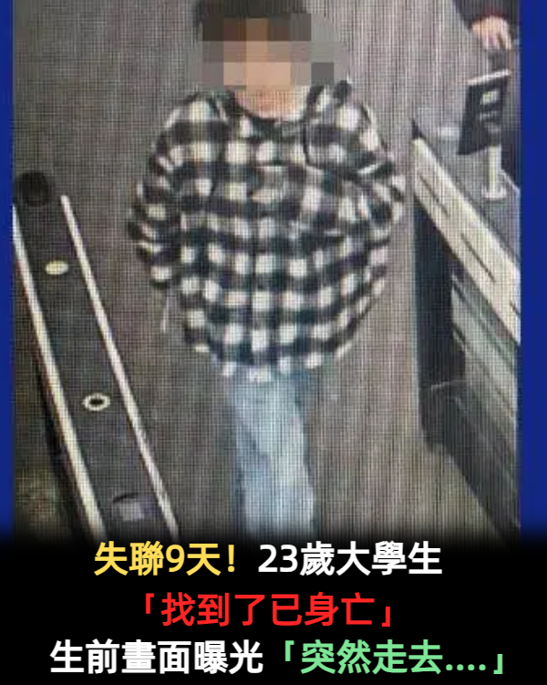 失聯9天!23歲大學生「找到了已身亡」 生前畫面曝光「突然走去....」 喵鼻頭02 2025-12-26 檢舉 23日,極目新聞記者從邛崍警方處獲悉,劉某某確實已被找到,不幸遇難,初步判斷排除刑事案件。劉某某的家屬也向記者證實,已於12月20日發現劉某某遺體,目前正處理後續事宜。 Advertisements 回首頁 2/2 Advertisements 編輯精選推薦 More + 14歲學霸被砍死!師生目睹「菜刀斷大動脈」當場喪命 行兇同學寫紙條:一定會殺你 快訊/一家四口陳屍家中!父親破門崩潰「初步調查曝光」 車站又傳濺血!23歲男「持刀抵頸」遭警圍捕 獨居豪宅過聖誕!大咖女星PO照「與2狗兒子相伴」 60歲無子無女「狀態宛若40歲」網羨慕:活出幸福感 寶寶患罕病活不了!年輕夫妻「堅持生下來」原因感動全網 赴日注意!50名台灣人驚傳「在日本被逮捕」 外交部緊急發聲 女友飛撲討抱太用力!情侶雙雙「墜樓1死1傷」監視影片全拍下 大逆轉!朱孝天突改口「發聲道歉了」急認錯原因曝光:踩到底線 被酸嫁不出去!劉亦菲不回應「突PO居家自拍照」 下秒「慘遭鏡子出賣」網全暴動:極品中極品❤️ 本來有下一波攻擊!殺人魔張文「第二基地曝光」預訂聖誕節入住 快訊/飛機驚傳墜毀「全員罹難」!死者名單出現「重量級高官」 衝擊30萬客戶!知名保險公司「正式宣布倒閉」 女市長驚爆「與已婚下屬上摩鐵」!她被抓到慌了解釋:「只是討論工作」 至今無妻無子!51歲主持一哥「遭母親看護報復」工作停擺 被拍到「暴瘦上街買菜」現況令人心疼... 快訊/飛一半墜毀!飛機上「乘客全數罹難」 快訊/驚傳慘案「至少10人喪命」!多人緊急送醫 美國出手了!川普下令「緊急出動封鎖」 專家嚇「台灣恐危險了」 快訊/巴士高速翻覆「死傷人數曝光」!多人被甩出車外 迷戀人體改造!33歲「J級胸器」驚傳墜樓身亡 哥哥淚曝「原本清純模樣」:她非常後悔整形 快訊/福原愛宣布「再婚懷孕偷吃男」!挺超巨孕肚現身「再提江宏傑」曝心聲 快訊/69歲資深女星「驚傳腦瘤過世」!生前暴瘦「門牙已掉光」 晚年兒孫滿堂!73歲影壇大哥「拄拐杖現身」腳步蹣跚 兒子「全程攙扶不喊累」網羨:又帥又孝順 凌晨突然衝出門!20歲男「找到時已成冰冷遺體」 爸爸痛心公布「生前監視器畫面」:一種解脫 0負評形象破功?66歲資深女星「代言被爆詐騙老人」 合作8年「黑歷史全被挖」官方要查了... 風景區玩高空彈跳繩子斷裂! 當場撞平台「墜入水中血跡斑斑」後續曝光