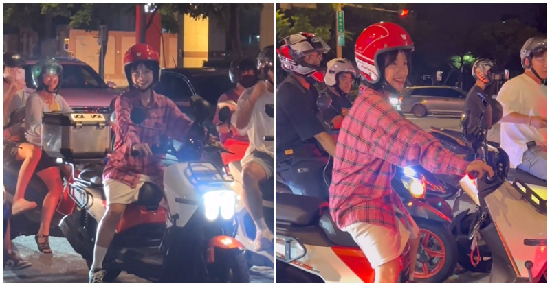 不過等到騎手摘下頭盔、鬆開頭髮後,記者傻了眼。