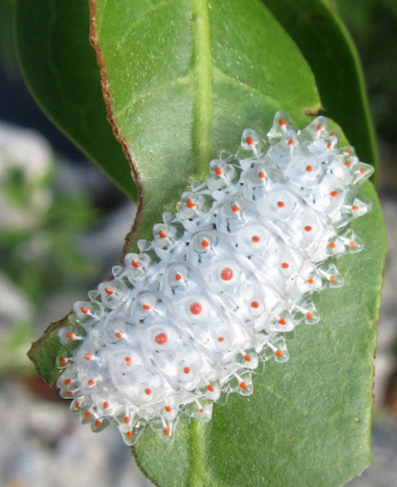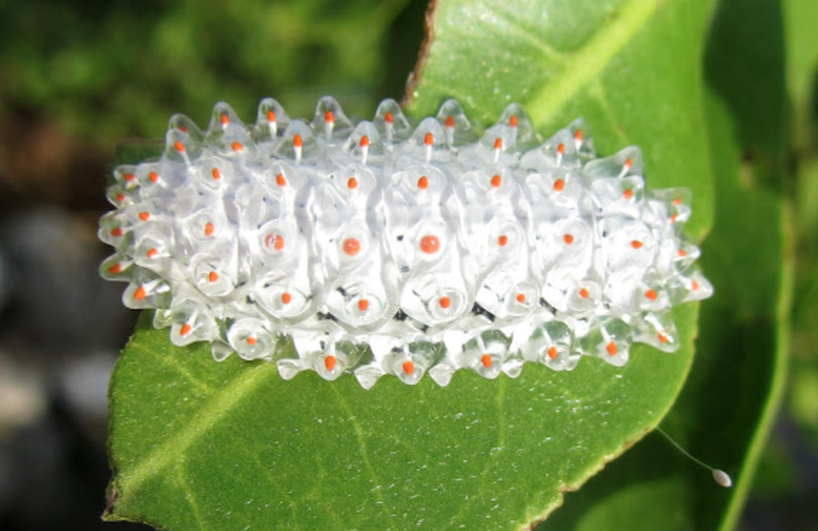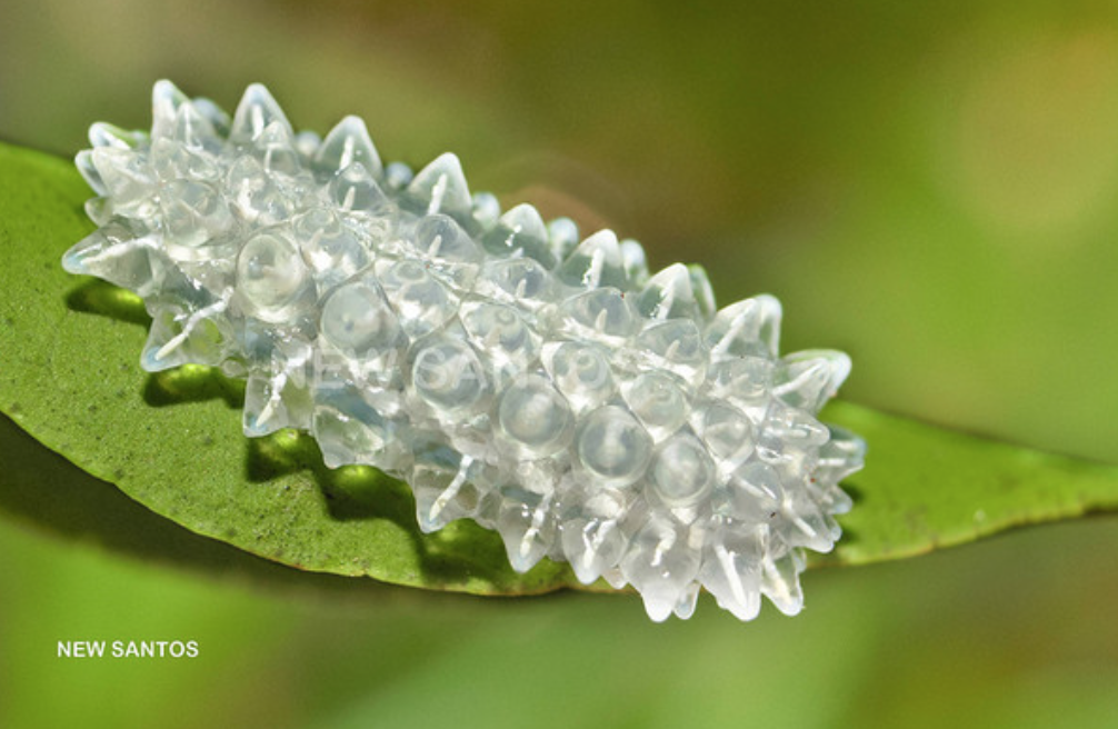 像是國外有位攝影師傑拉多.阿茲普某天在熱帶雨林中,發現樹葉上有個透明軟Q的昆蟲,膠狀外表晶瑩剔透,突起小刺上面還有很多橘色小點,看起來就像一個軟綿綿的軟糖,模樣非常奇特,讓他立馬拍下照片,並將這一系列拍攝作品稱為「寶石毛蟲」。