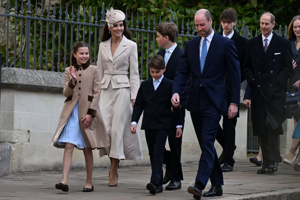 當天是英國王室一年一度的「家庭聚會」,一家人齊聚在溫莎城堡的聖喬治教堂,參加復活節禮拜活動。