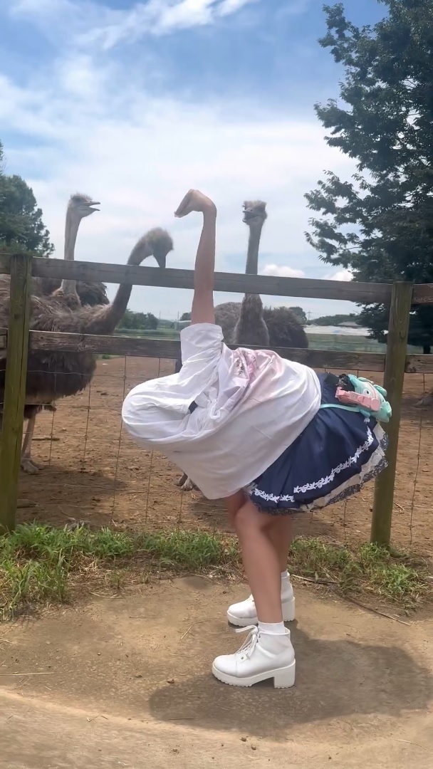 由於扮演得太過傳神,她甚至展開特別企劃,真的前往動物園以鴕鳥姿態去會見真正的鴕鳥,那些大鳥們看起來對她充滿了好奇心。這種完全放棄形象的搞笑風格,也讓網友們更加被她圈粉了呢!