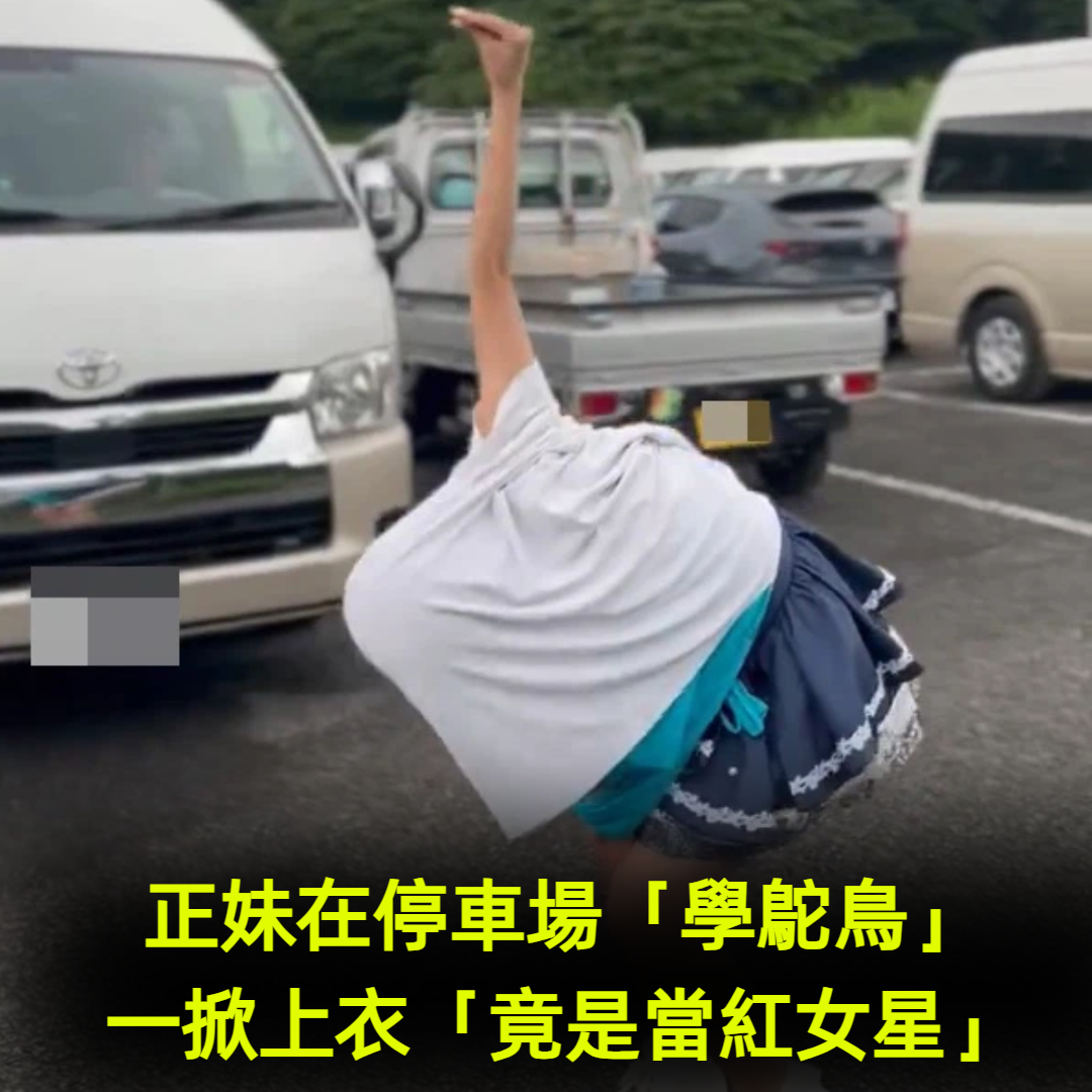 正妹在停車場「學鴕鳥」笑翻網友!一掀上衣「竟是當紅女星」真面目美呆