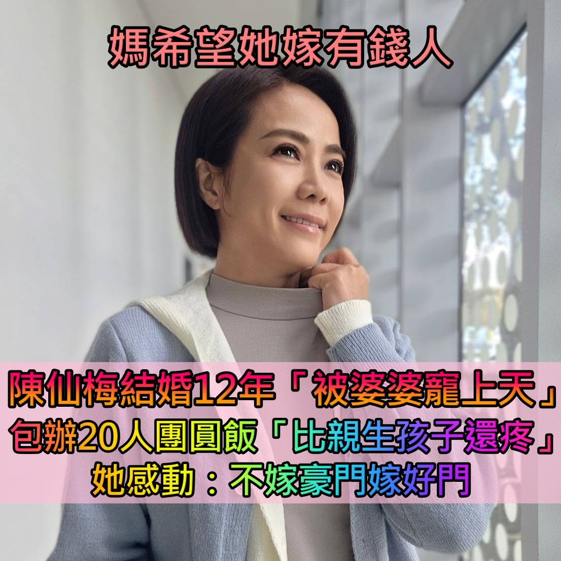 包辦20人團圓飯!陳仙梅結婚12年「被婆婆寵上天」:不嫁豪門嫁好門 比親生兒還疼「遇到完美婆婆」