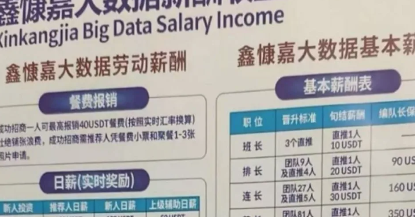 詐騙手段部分,平台會先要求投資者下載專屬應用程式「DGCX鑫慷嘉數據」APP,並繳交至少1000USDT(約新台幣2.9萬)的入會費用。大多數新進會員會將資金交給上級代為操作,跟隨所謂的投資講師進行交易。然而,整個交易後台完全被平台操控,可以任意調整漲跌數據。該平台建立了一個龐大的傳銷體系,將全國劃分為四大戰區,從最基層的「班長」到最高層的「司令員」,共設立九個階級,透過直接推薦獎金和團隊佣金等方式,不斷發展下線會員。然而,該平台於今年6月突然出現無法提現的問題,詐騙案因而曝光。