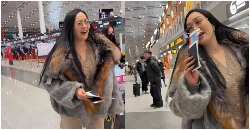 最讓人揪心的是她的手背,青筋根根凸起,看得人莫名發緊,指尖更是凍得通紅,想來是深圳當天氣溫不高,單薄的紅裙根本抵擋不住寒意。