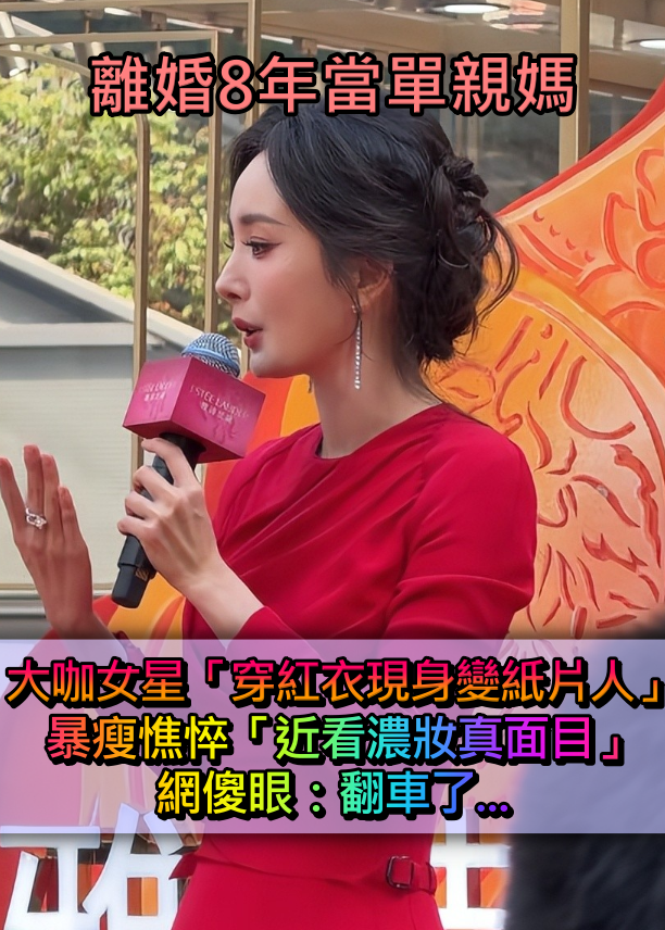 離婚8年當單親媽!大咖女星「穿紅衣現身變紙片人」 暴瘦憔悴「近看濃妝真面目」網傻眼:翻車了
