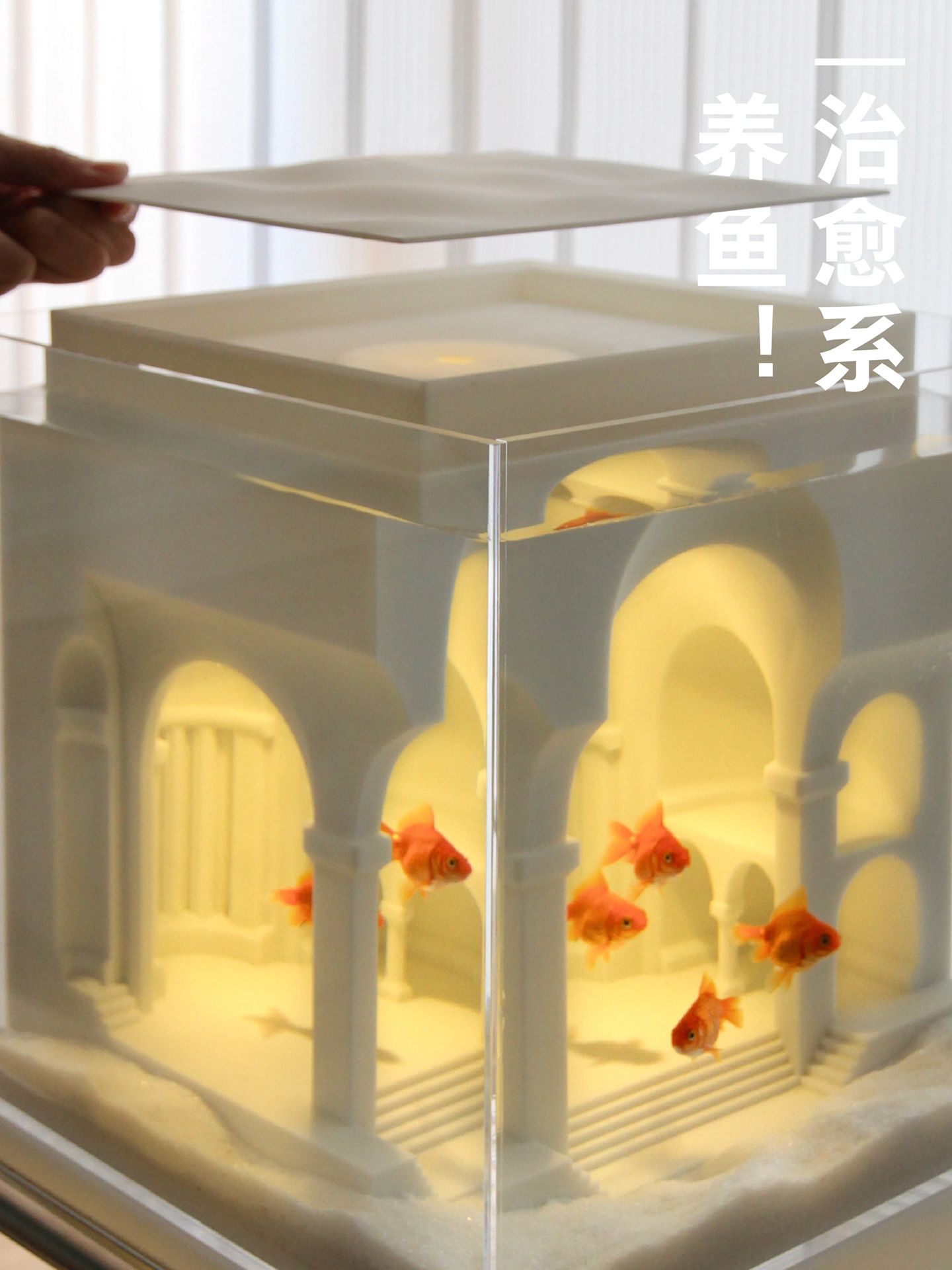 小紅書@余一二 是一位手作達人,經常在個人帳號裡分享自己的各種作品,最近有了想養魚的念頭,但又不喜歡傳統的山水溪流的魚缸造景,因此他便自己動手給魚造房子,直接用3D列印做出了一整個魚缸城堡!!