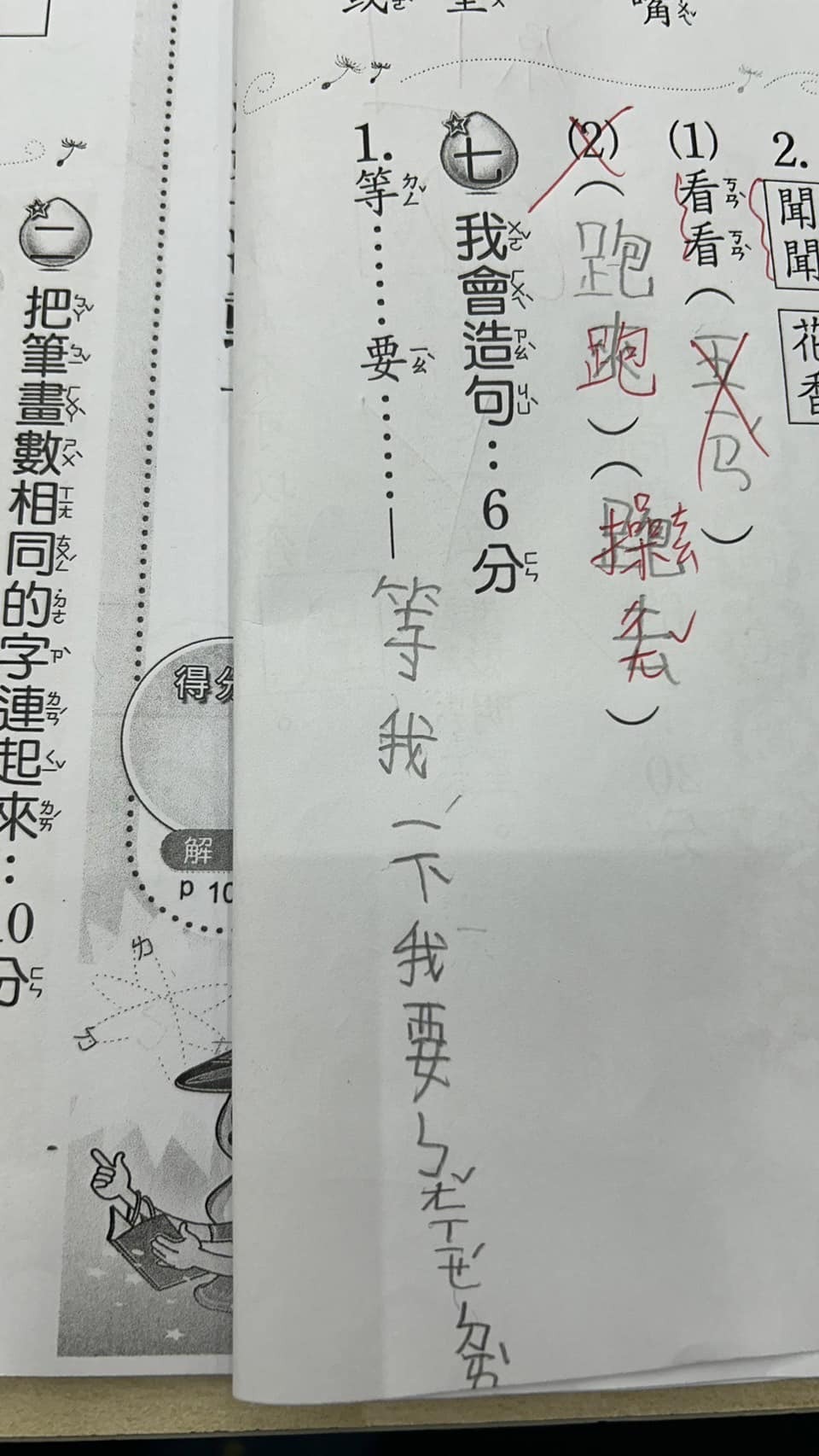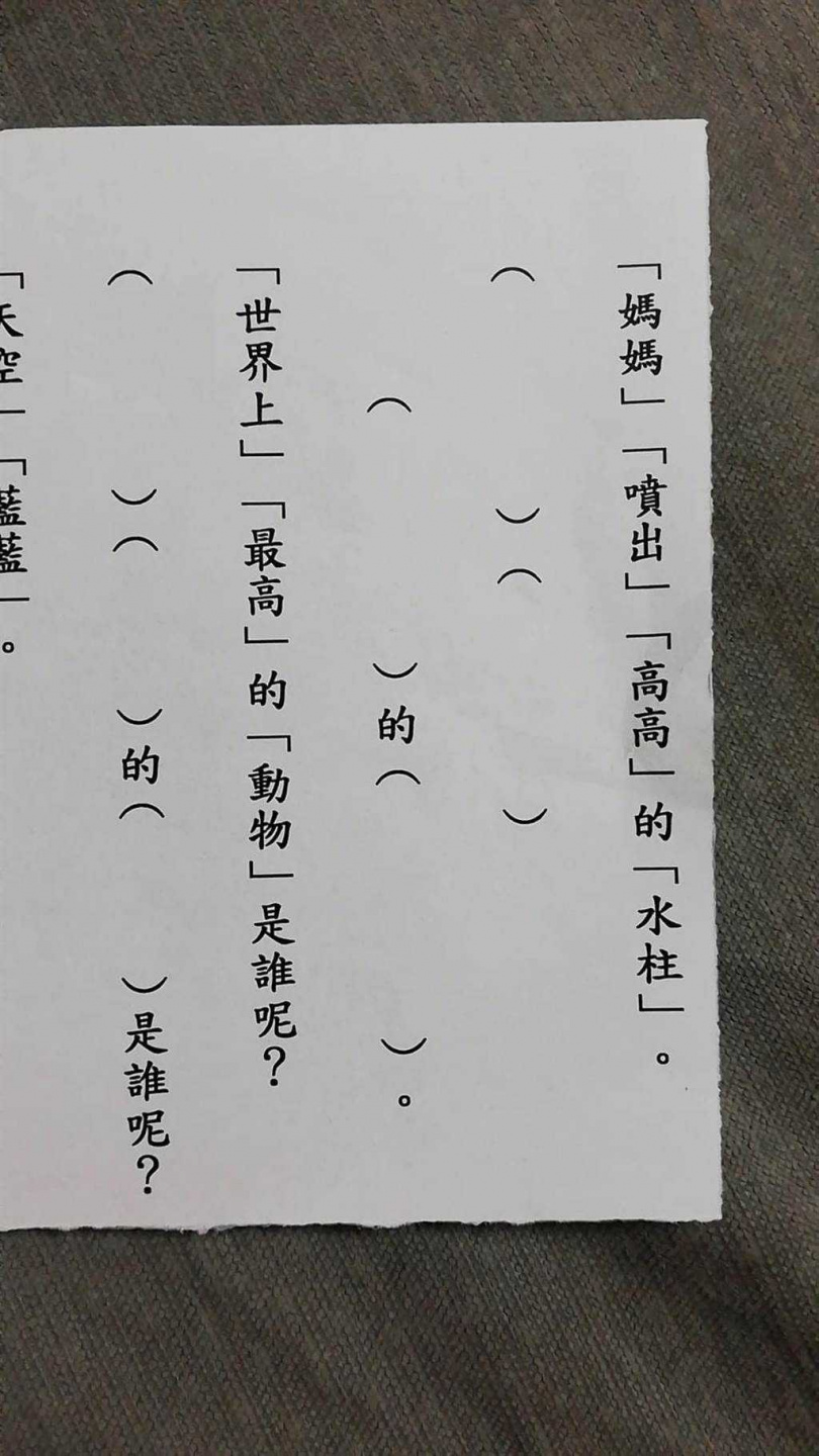 根據《爆廢公社二館》臉書社團分享,一位媽媽在檢查小二女兒的國語作業時,發現其中一道填空題目相當特別。題目中出現「媽媽」、「噴出」、「高高」、「水柱」等字眼,這樣的組合立刻讓媽媽笑得合不攏嘴,甚至自問:「難道是我想太多了嗎?」