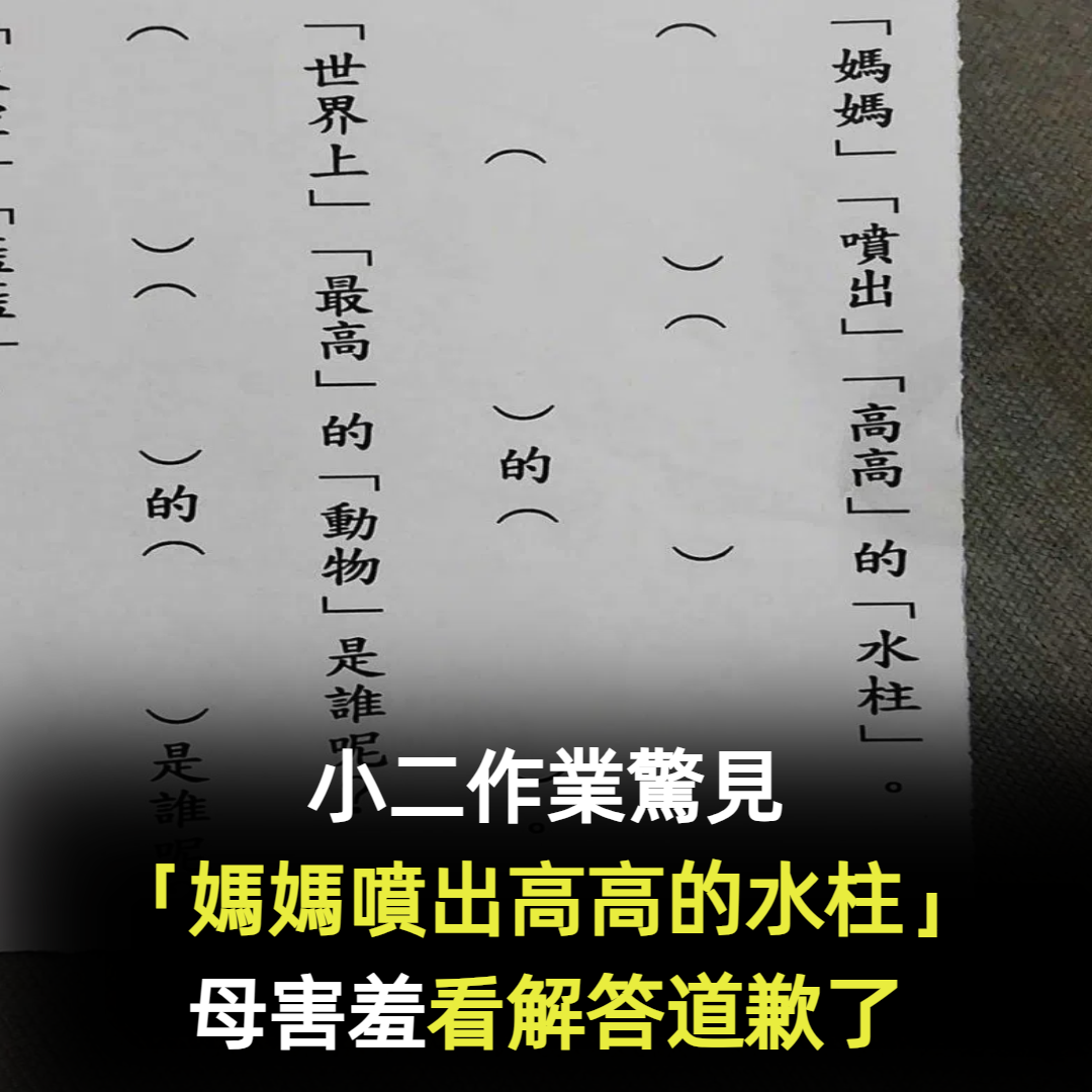 小二作業驚見「媽媽噴出高高的水柱」母嚇傻 害羞看解答道歉了