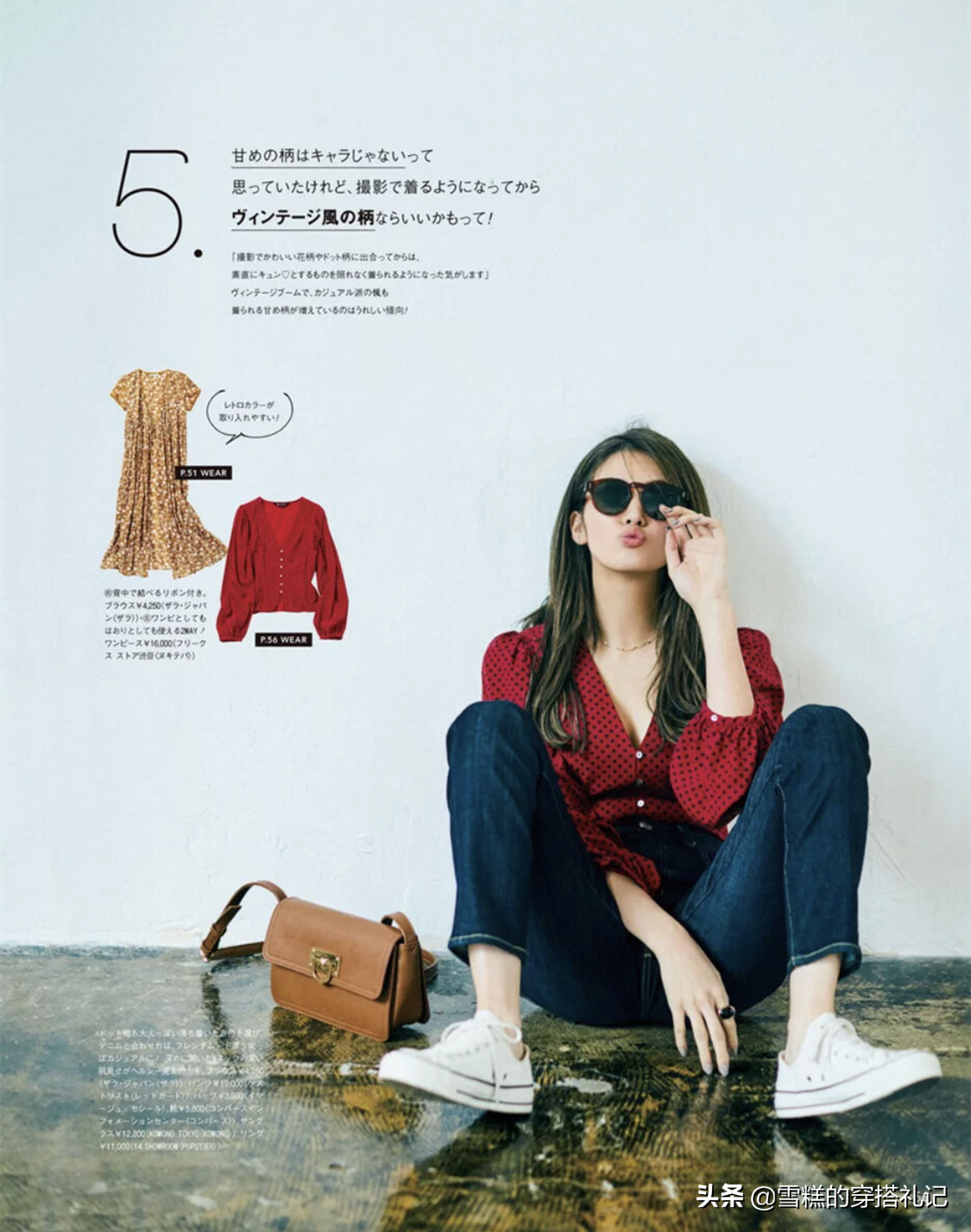 如果覺得All black的穿搭不是很符合多姿多彩的夏天,那麼不妨試試黑色+黑白碎花的穿搭,不僅能讓整體Look更加活潑有親和力,而且還能顯高顯瘦。如果覺得碎花裙有一些顯老氣,還可以搭配水玉圓點的半身裙,年輕活力感十足。