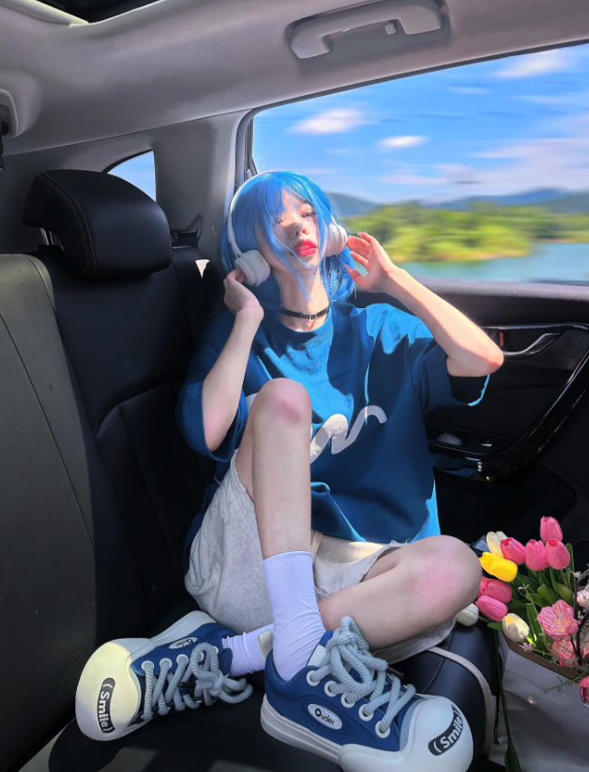 「九分喜欢」偶爾也會脫下口罩,露出自己的臉蛋,沒想到時常穿著甜美可愛風格的她,臉蛋竟是成熟御姐風!反差感真的超大啊~~