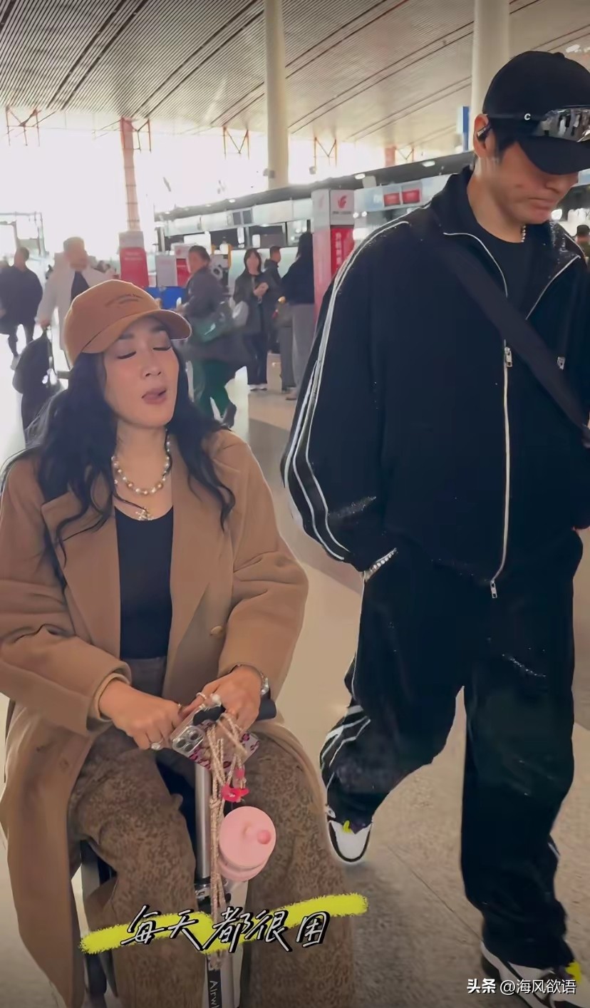 最近鍾麗緹和張倫碩走機場的照片直接衝上熱搜,只見鐘麗緹穿著駝色大衣配豹紋褲,整個人騎在電動行李箱上滑行,看著確實圓潤了不少。