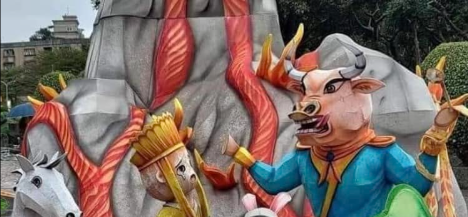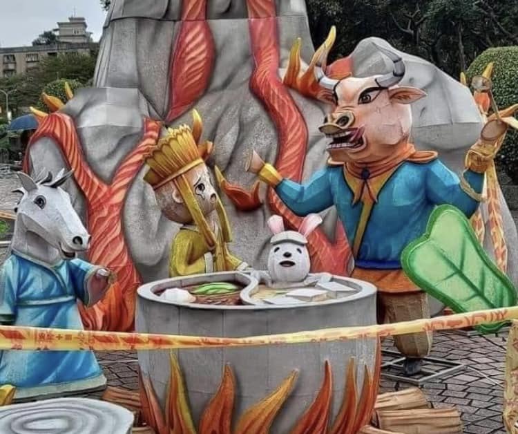 可以看到畫面中,西遊記花燈有經典的唐三藏、牛、馬燈飾,後面則是擬真的火焰山!然而官方說明這作品的創作概念,就是西遊記人物們想要來個石頭火鍋派對,並於元宵節這天休戰,只不過說是要煮石頭火鍋,前方泡著的兔子卻意外引起網友注意,對比於旁邊舌頭伸出來的牛魔王,一看感覺就是要把兔兔吃掉一般,模樣相當生動。