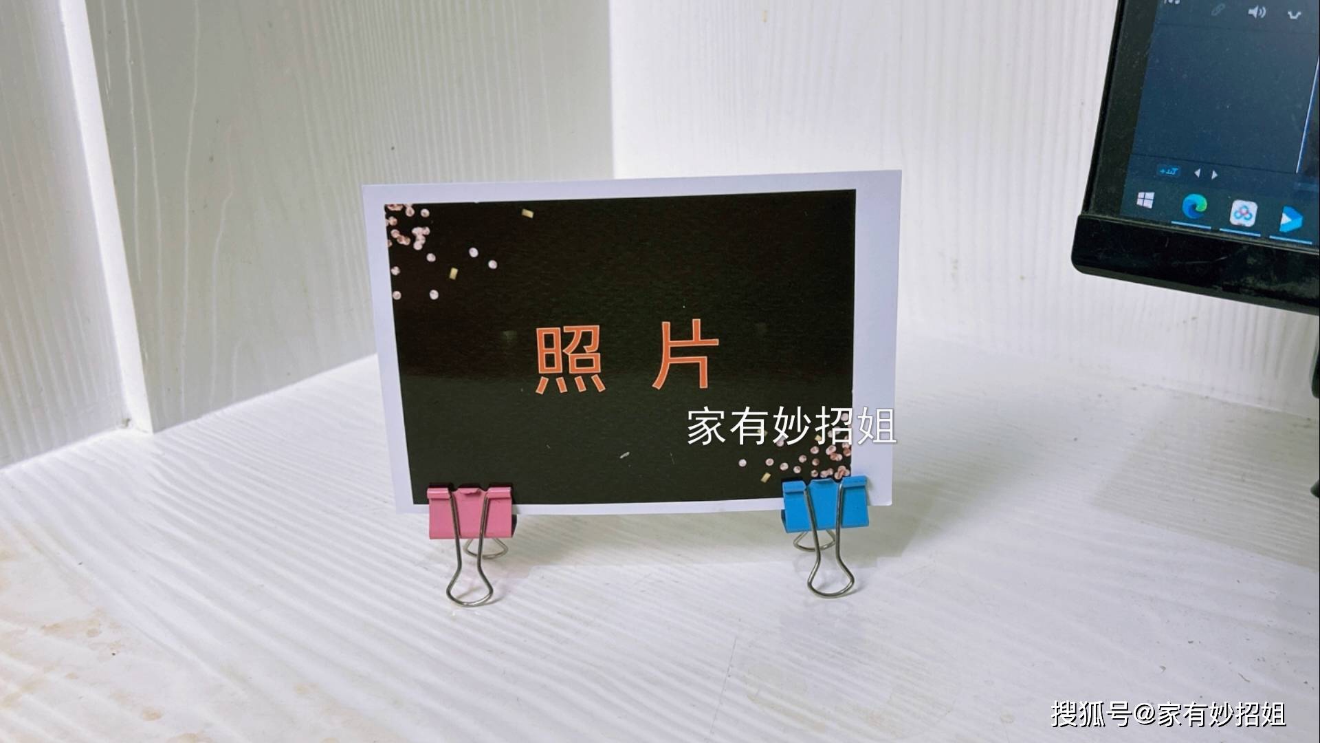 一些比較有紀念意義的照片,我們都會定製相框、把照片擺在裡頭。其實擺放照片,也能用兩個長尾夾充當相框。先用兩個長尾夾、把相片底部固定,並將手柄都朝下,這樣就能輕鬆把相片固定住,不管擺在哪裡都可以。