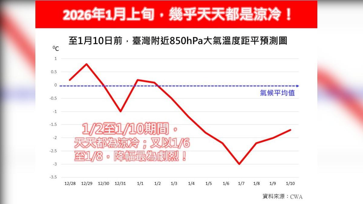 吳德榮最後提醒,下週日白天起至週一上午,冷空氣稍微減弱,白天晴朗舒適、早晚偏冷。下週一下午至週二清晨,下一波冷空氣前緣快速掃過,迎風面轉為局部短暫雨。下週二白天起再度轉晴冷,不遜於上波的「強冷空氣」緊接南下,又有明顯的「輻射冷卻」加成效應,下週三至週六清晨將創下「入冬最低溫」!並有形成首波寒流的機率。