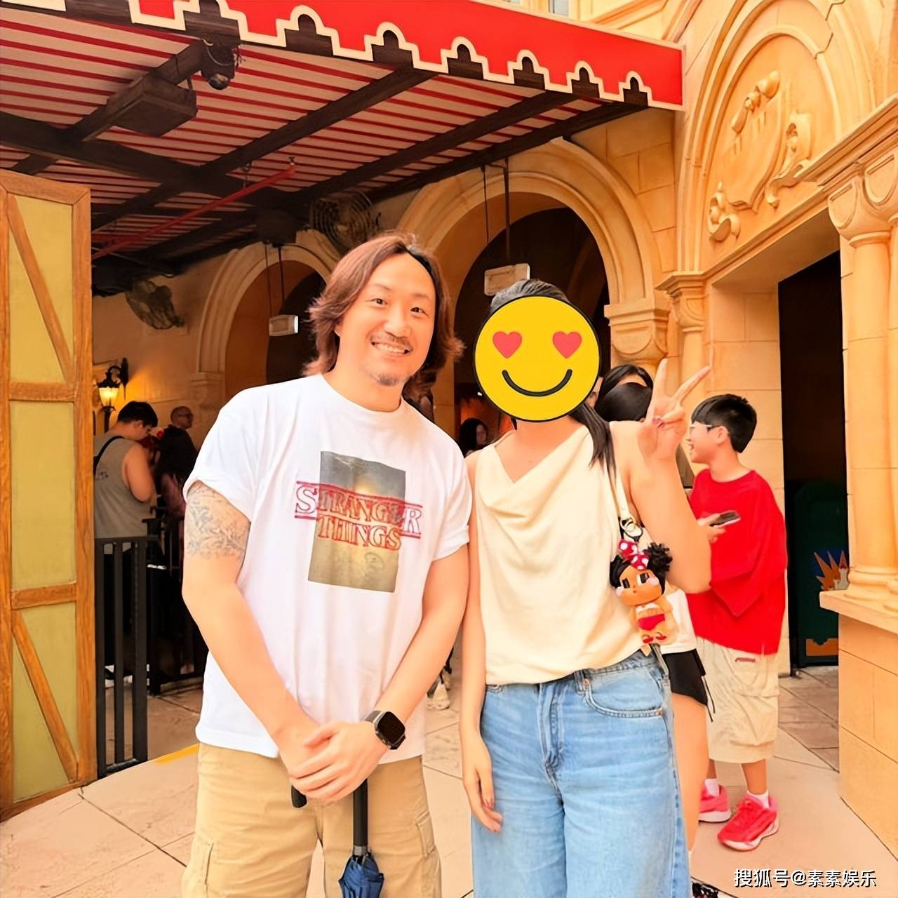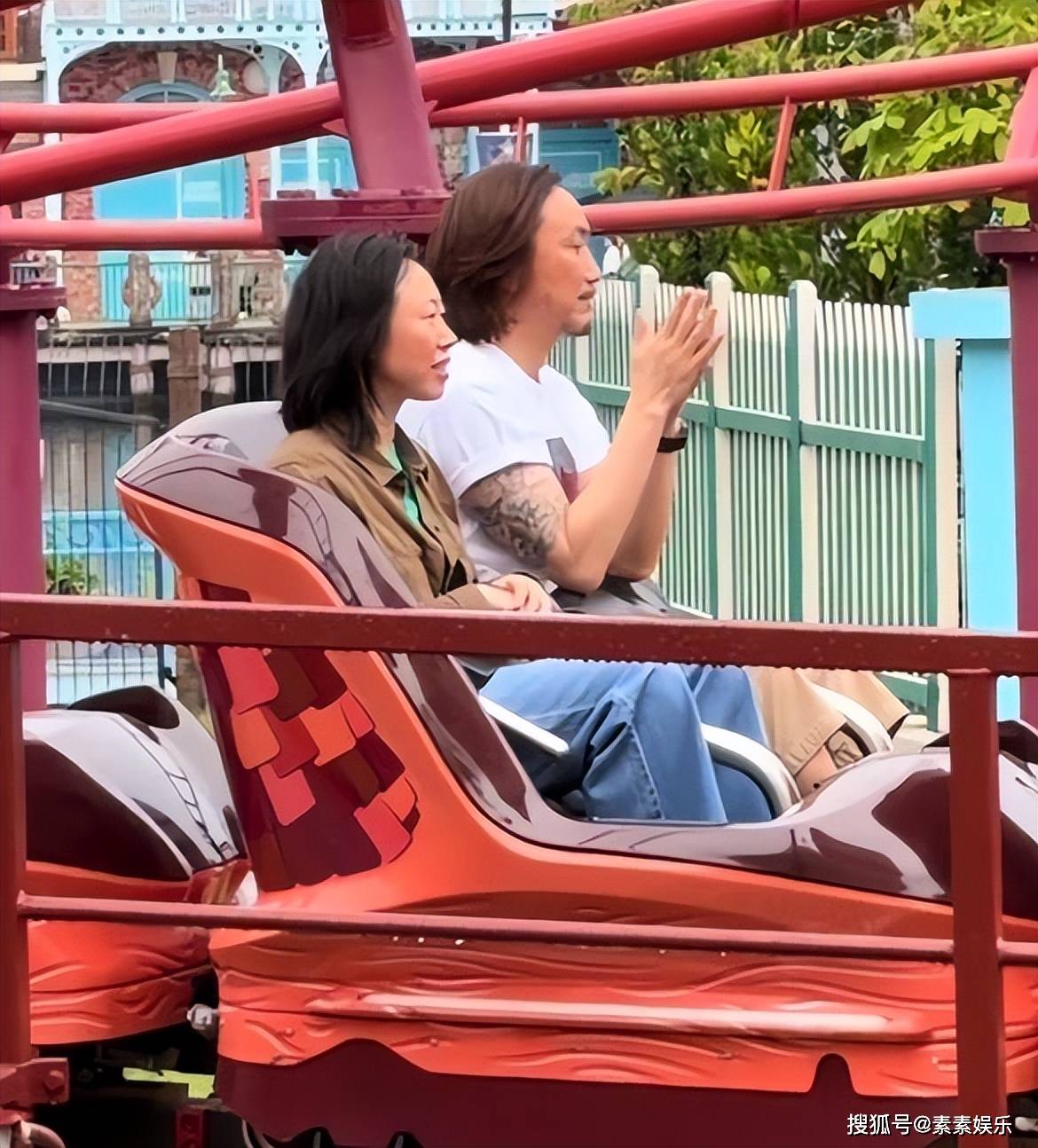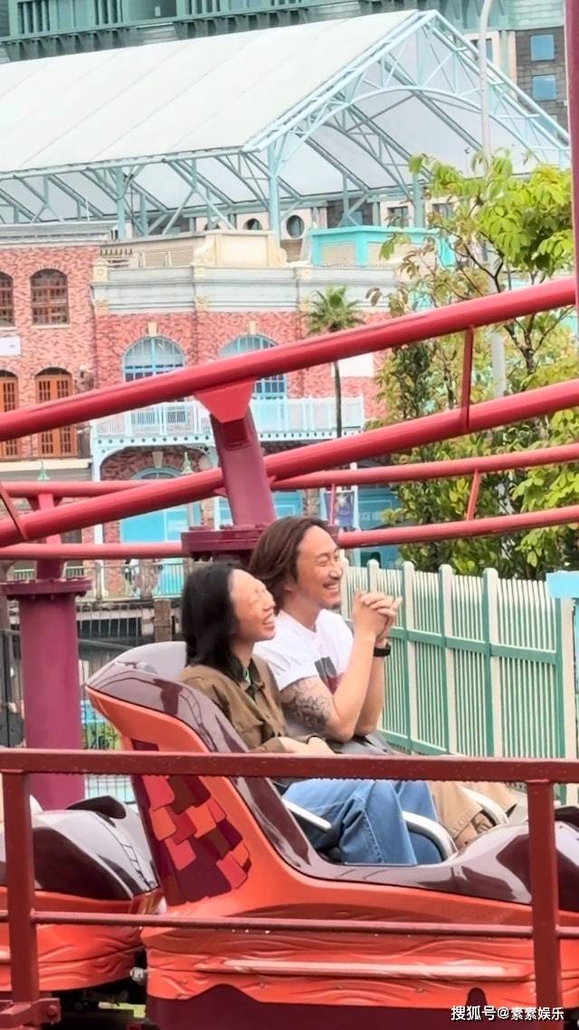 鄭中基和該女子一起公開露面現身,緊接著一起在遊樂場裡開心玩樂。