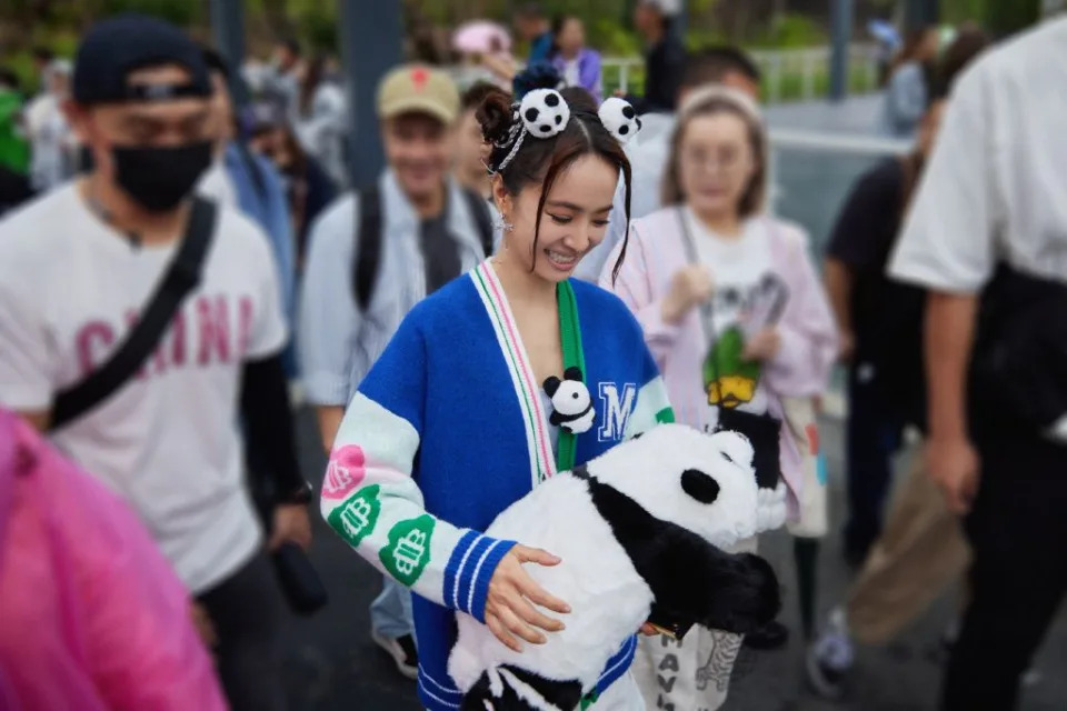 鏡頭底下的她,保養狀態相當好,完全看不出她已經超過40歲,凍齡容顏宛如女大生。事後她也在微博分享一段熊貓的影片,開心表示「太不真實了」,連發好幾個愛心符號,還被捕捉到她一臉滿足的笑容,抱著熊貓玩偶離開。